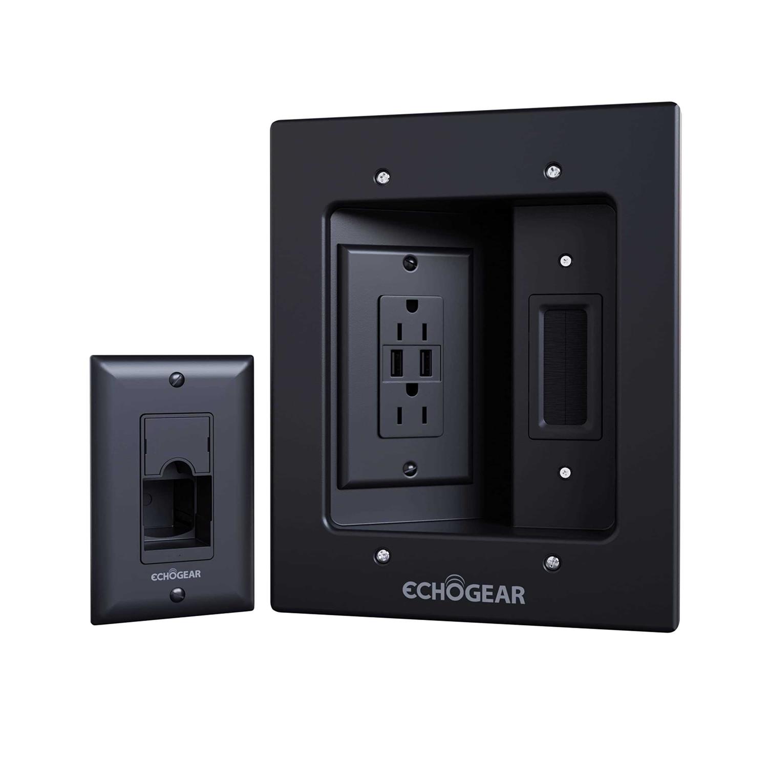 ECHOGEAR TV Cord Hider for Wall Mounted TV Dual Outlet in Wall Cable Management Kit for Power Cables & Low Voltage Wires