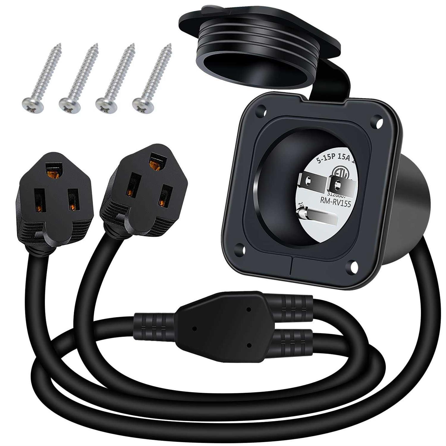 EilxMag 15 Amp 125V Power Inlet Port Plug Flanged Inlet NEMA 5-15P RV Power Outlet