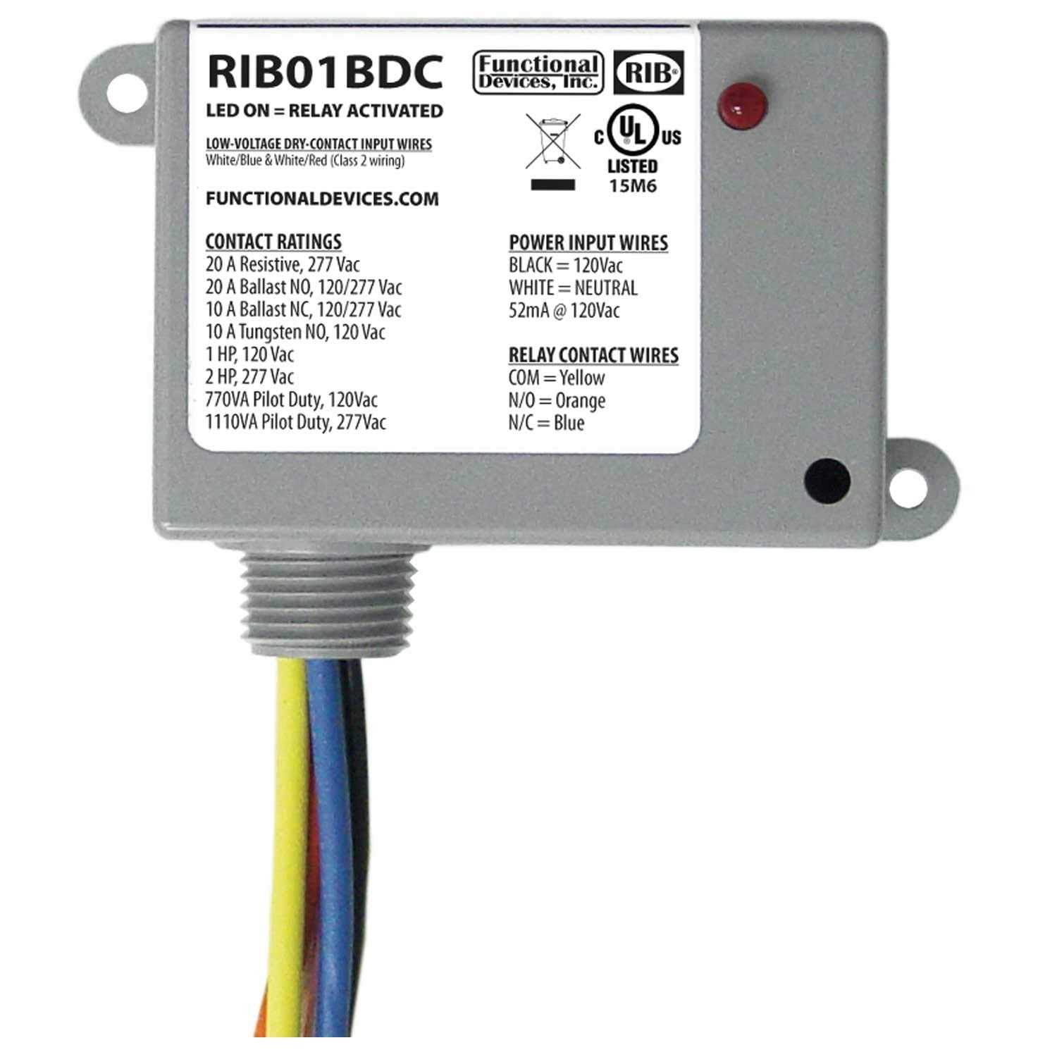 Functional Devices RIB01BDC Dry Contact Relay 20 Amp Spdt Class 2 Dry Contact Input