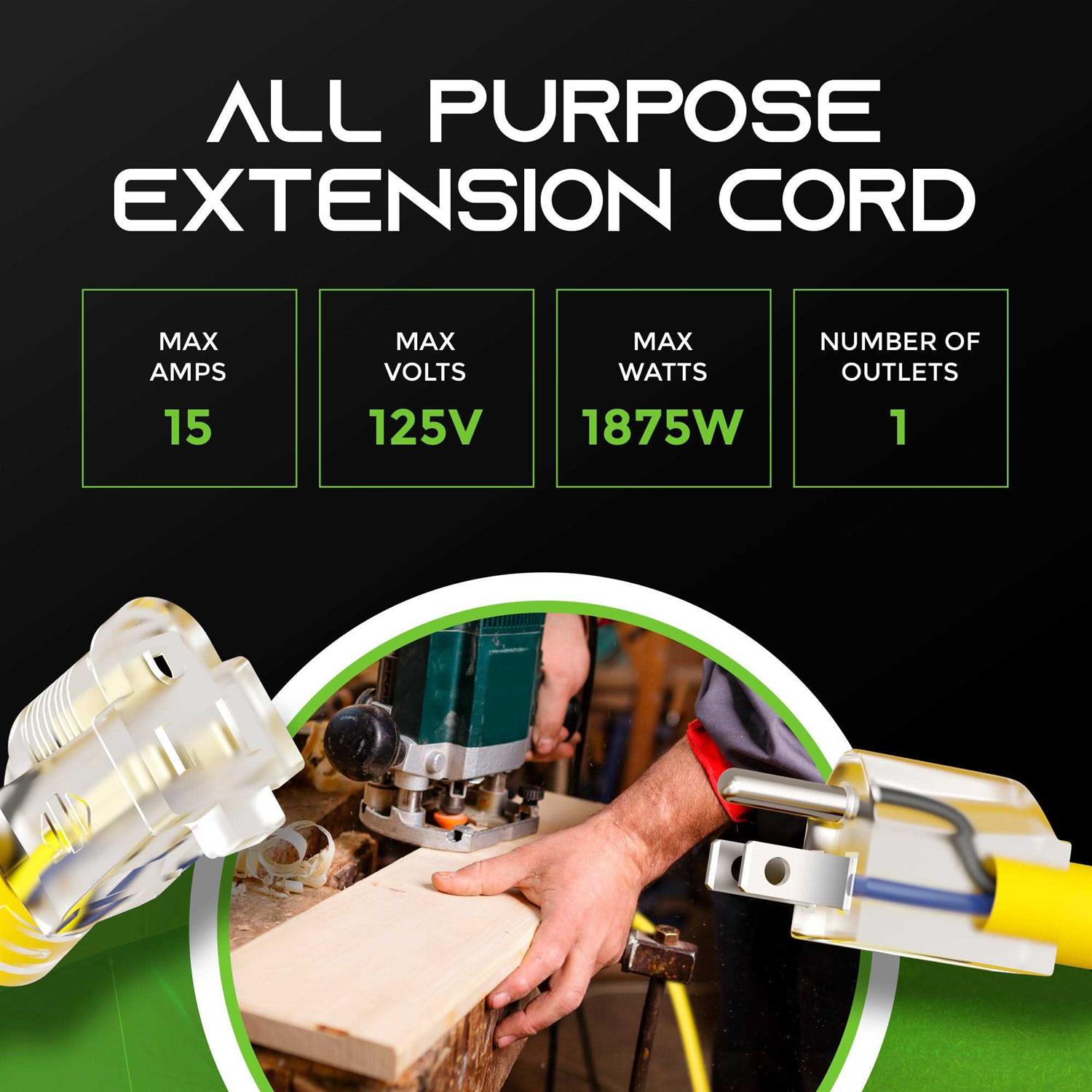 GearIT Outdoor Extension Cord AWG Gauge 3 Prong Plug