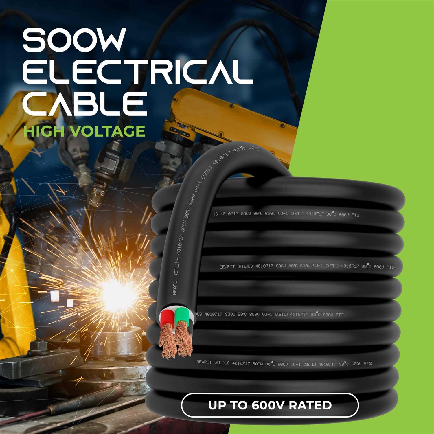 Gearit 6 AWG Portable Power Cable Soow 600v 6 Gauge Electric Wire for Motor Leads