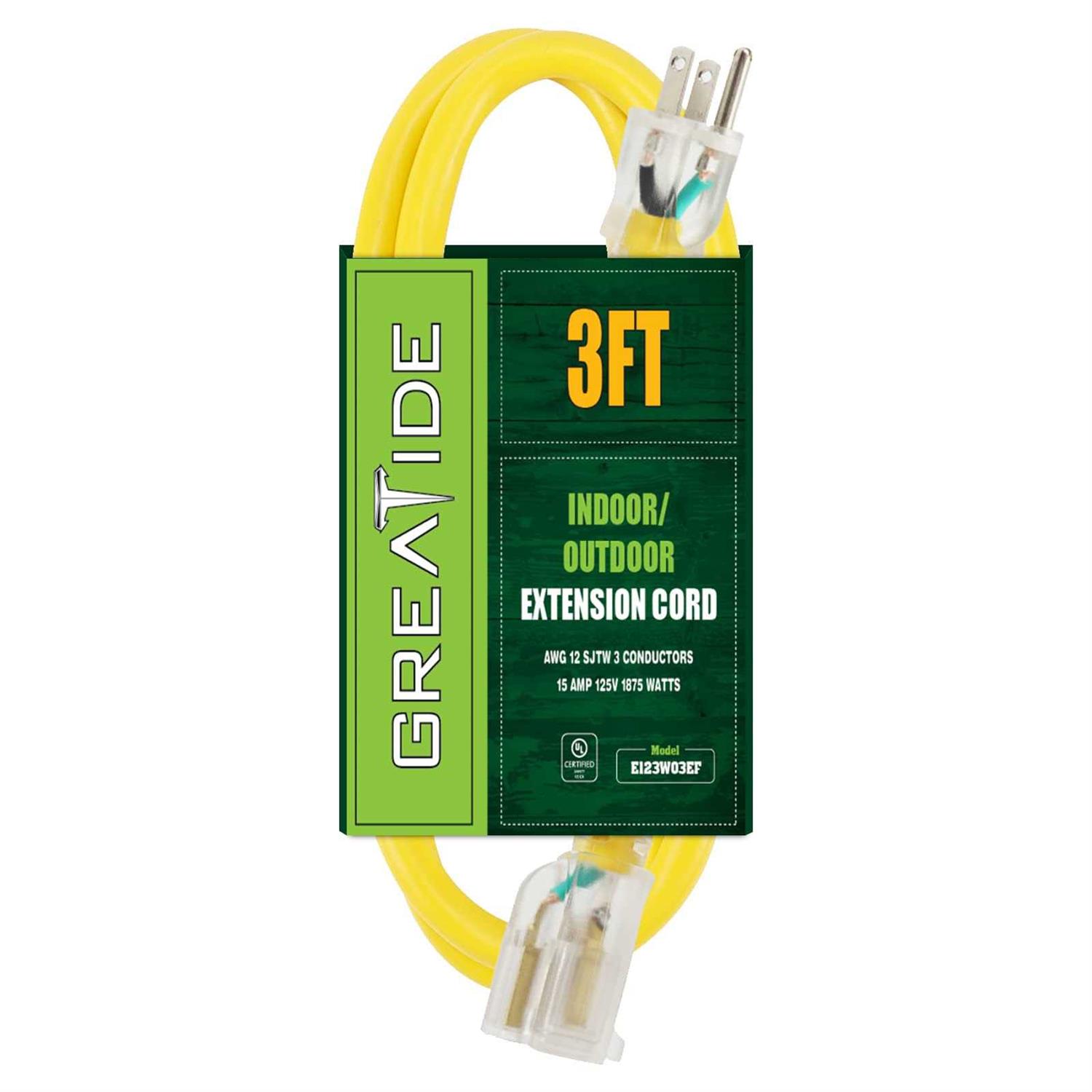 GREATIDE 3 Ft Outdoor GFCI Lighted Extension Cord with 3 Power Outlets