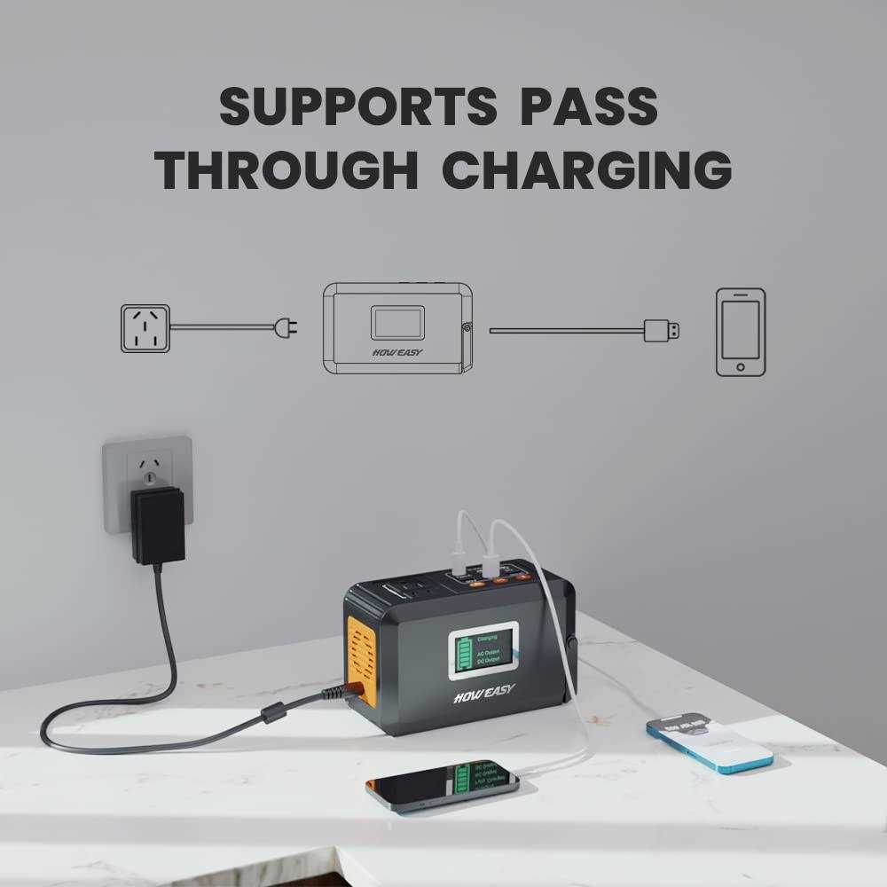 HOWEASY 120W Portable Power Station 88Wh Solar Generator Lithium Battery Power with 2 110V AC Socket/ 3 DC Ports/2 USB QC3.0/LED Light