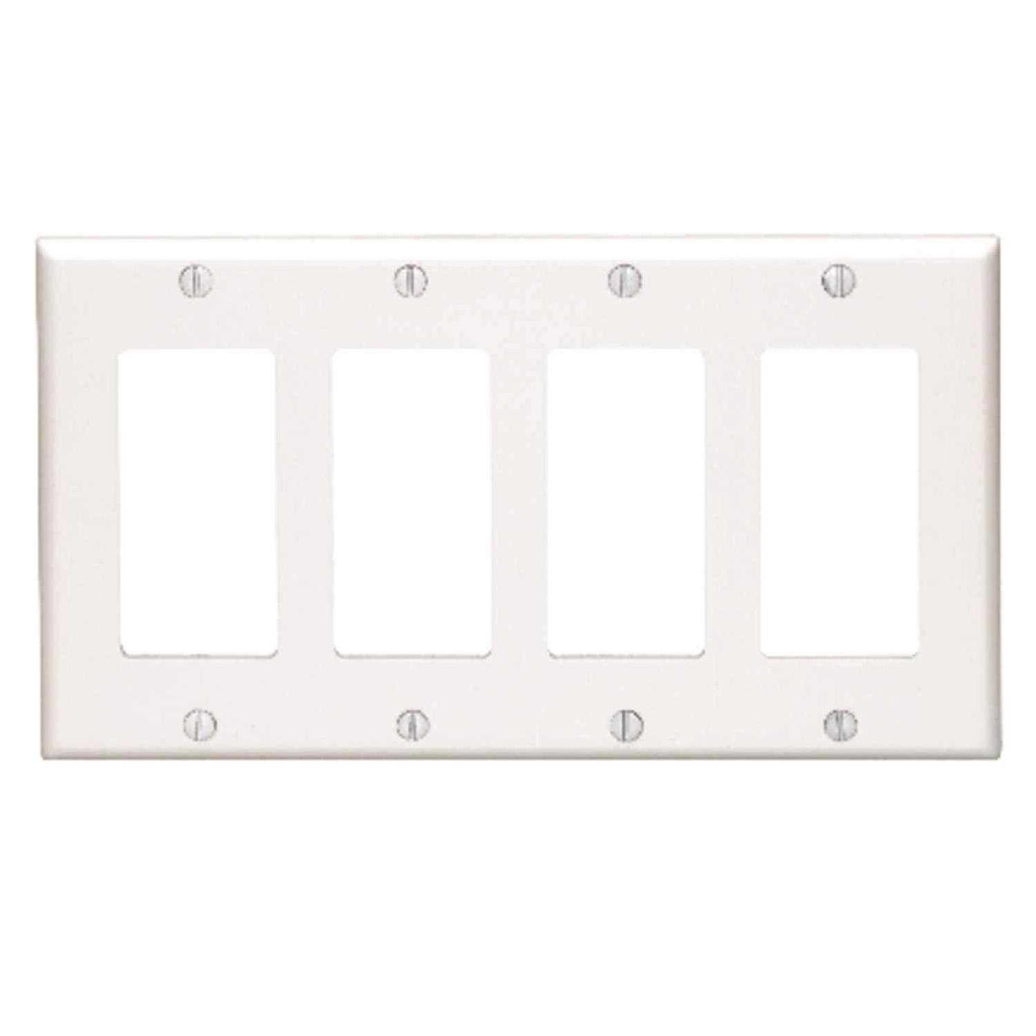 Leviton 80412-W 4-Gang Decora Wallplate