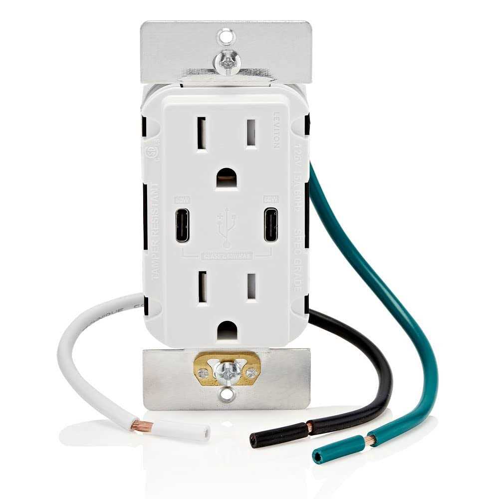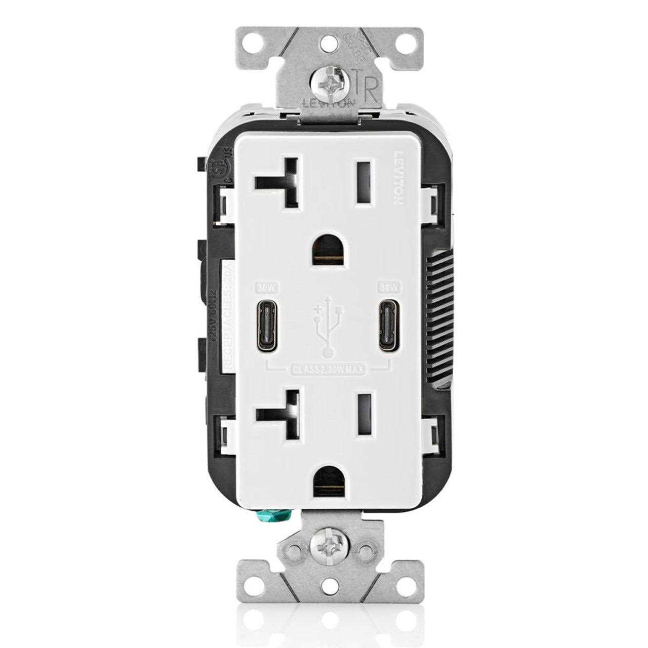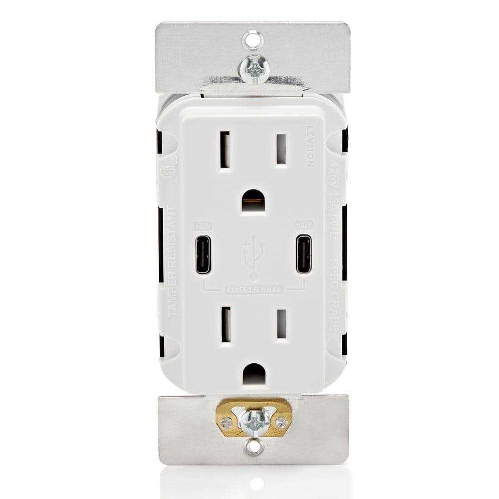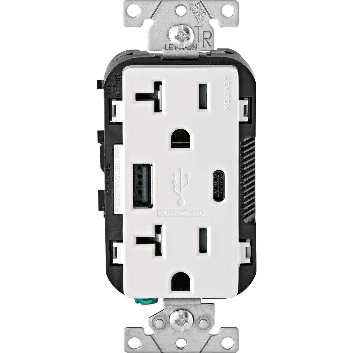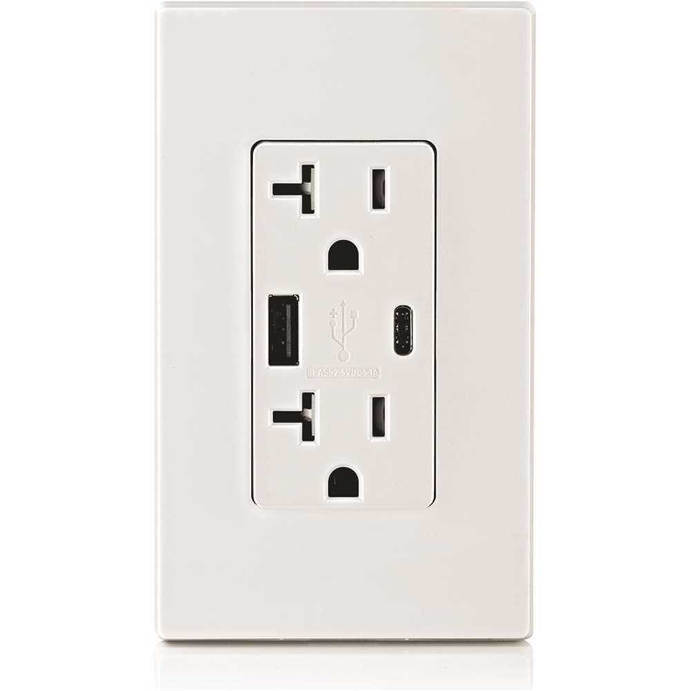 Leviton T5835-W 20A Tamper-Resistant Receptacle USB Type CC Charger