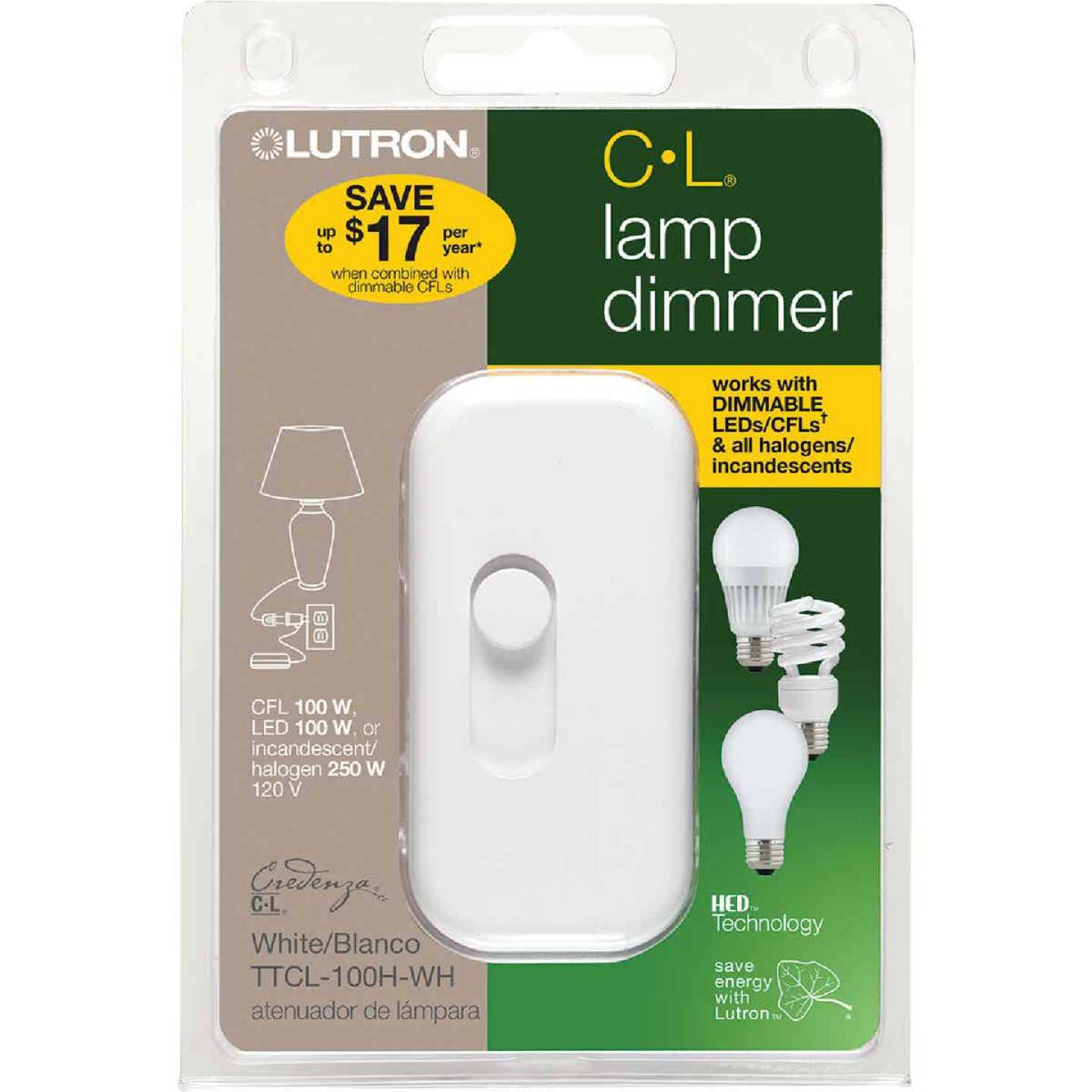 Lutron Credenza CFL/LED Lamp Dimmer TTCL-100H-WH
