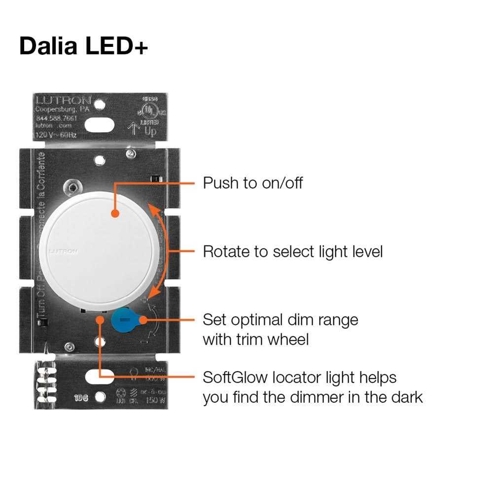 Lutron Dalia LED+ Single-Pole/3-Way LED Illuminated Rotary Light Dimmer Switch RCL-153PNLH-BL