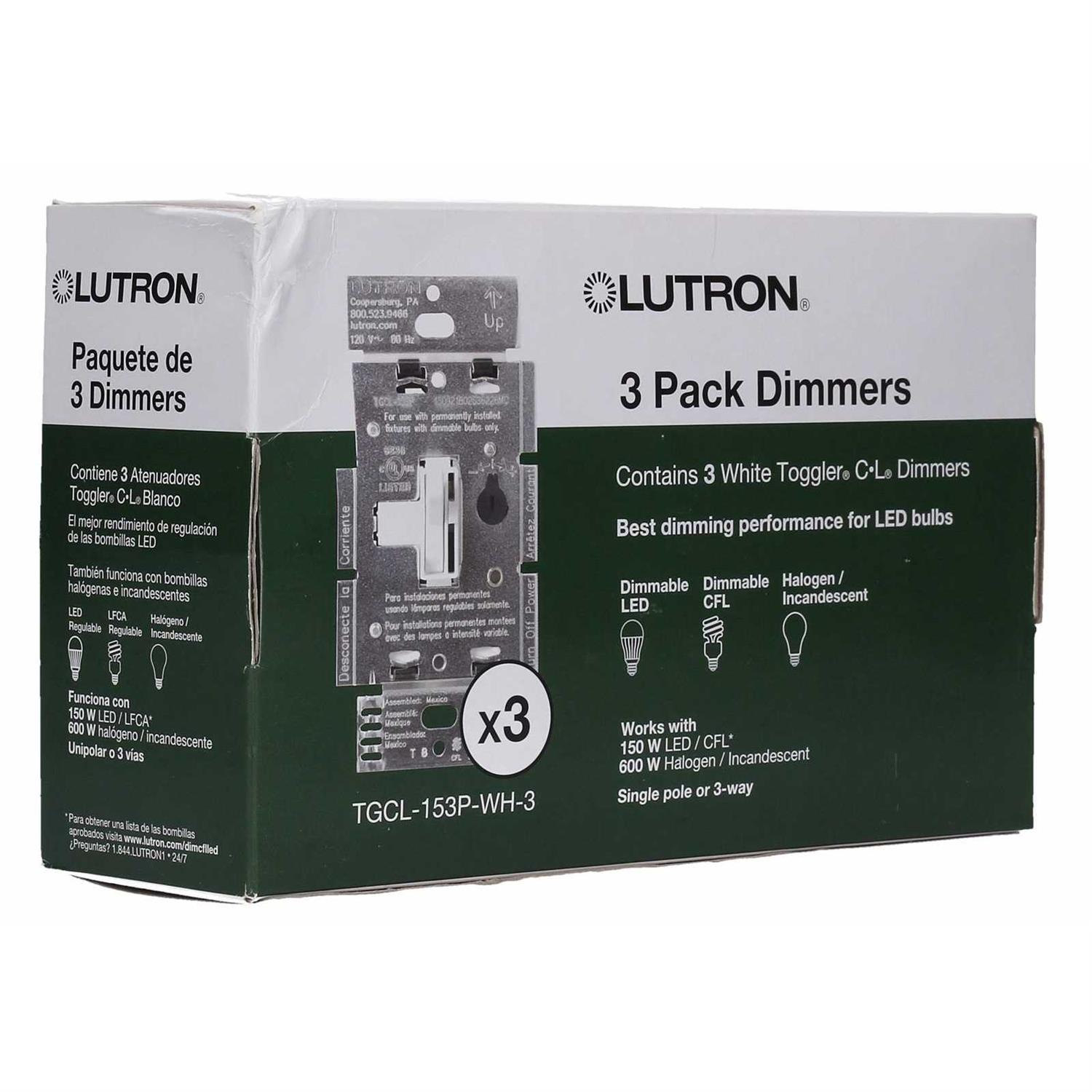 Lutron Tgcl-153p-wh-3 Toggler 150W Single-Pole/3way LED Dimmer Switch