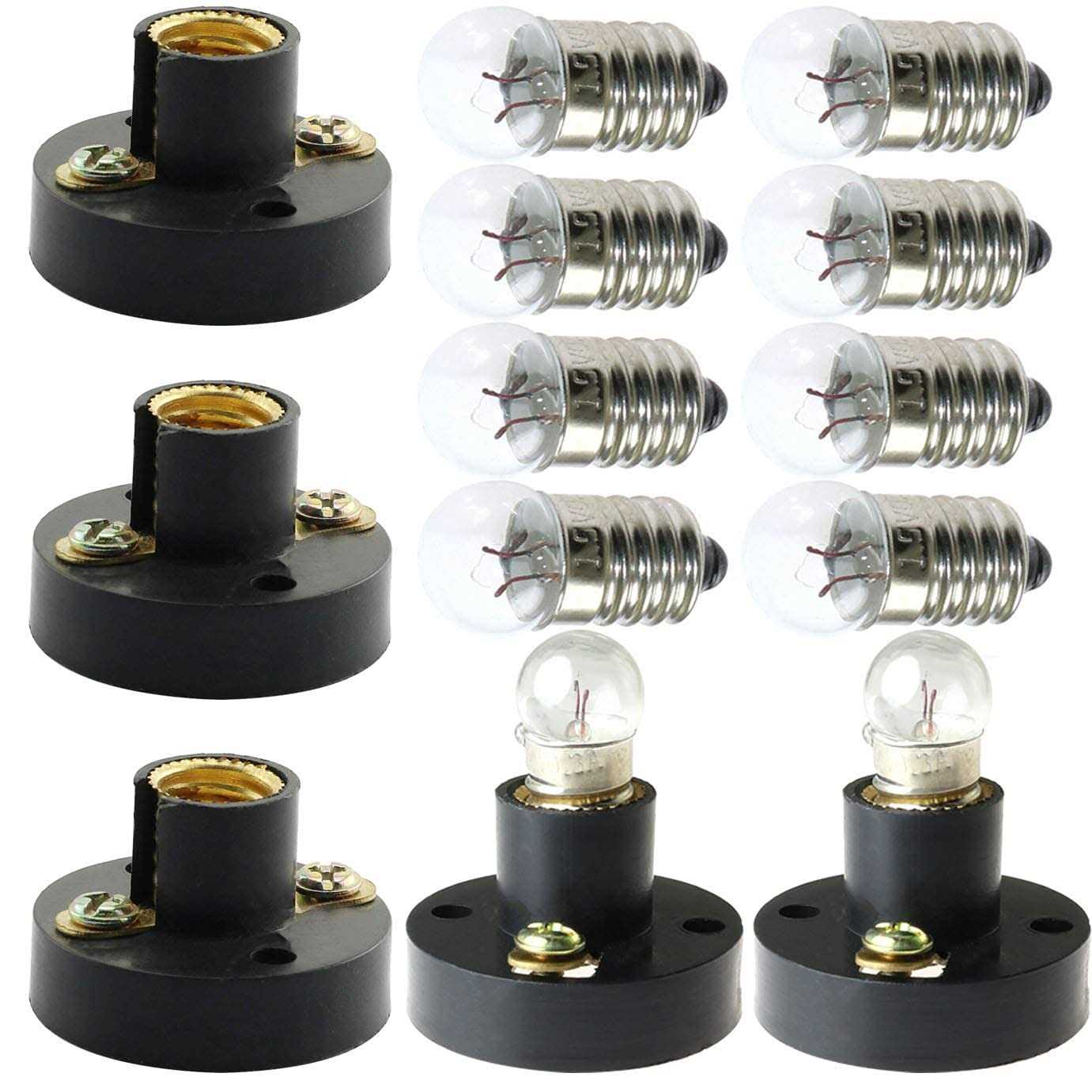 MEETOOT Set of 10pcs Screw Mini Bulb 6.3V and 5pcs E10 Mini Bulb Holder Black Plastic Pure Brass Lamp Bases Student Experiment Lighting DIY
