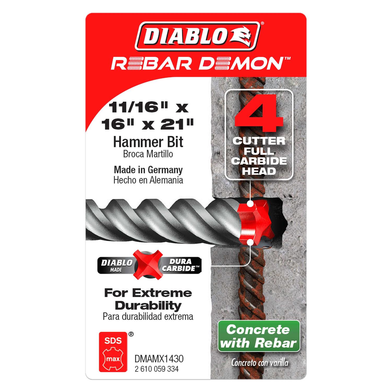 Diablo DMAMX1430 11/16 x 16 x 21 in Rebar Demon SDS-Max 4-Cutter Full Carbide Head Hammer Drill Bit