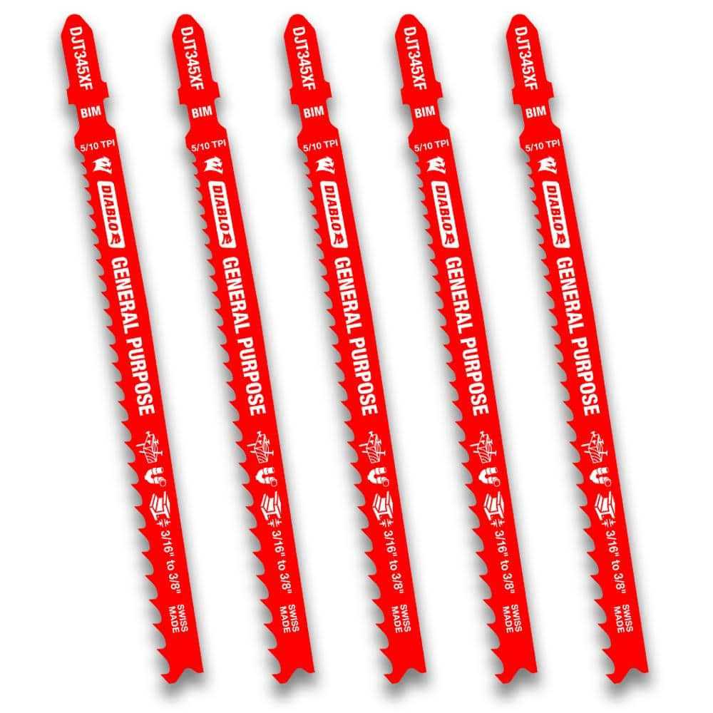 Diablo DJT345XF5 5/10 TPI Bi-Metal T-Shank Jig Saw Blades
