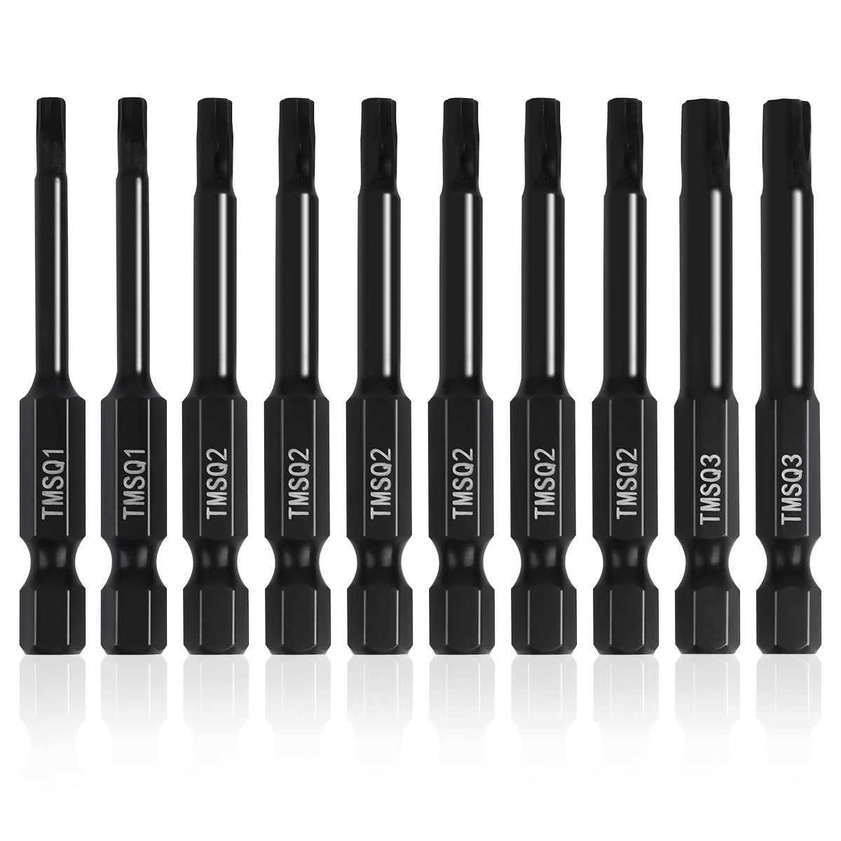 Double Square 8 Point Star Bit Set 2 Square Drive Torx Bits in the following Sizes #, 2, and #3
