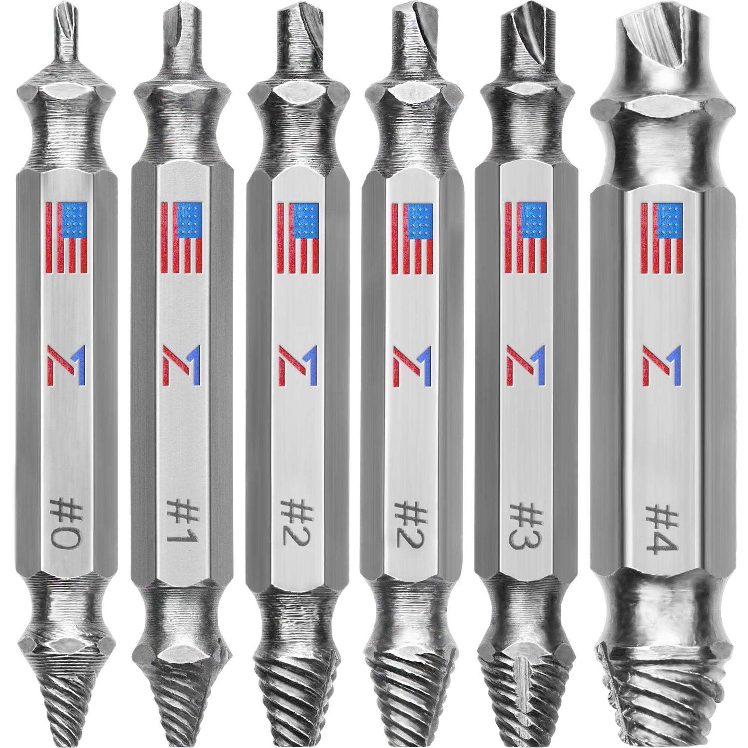 Double-Sided Screw Extractor Set 6 PC Stainless Steel Stripped Screw Remover Kit w/ Case by Mata1-USA