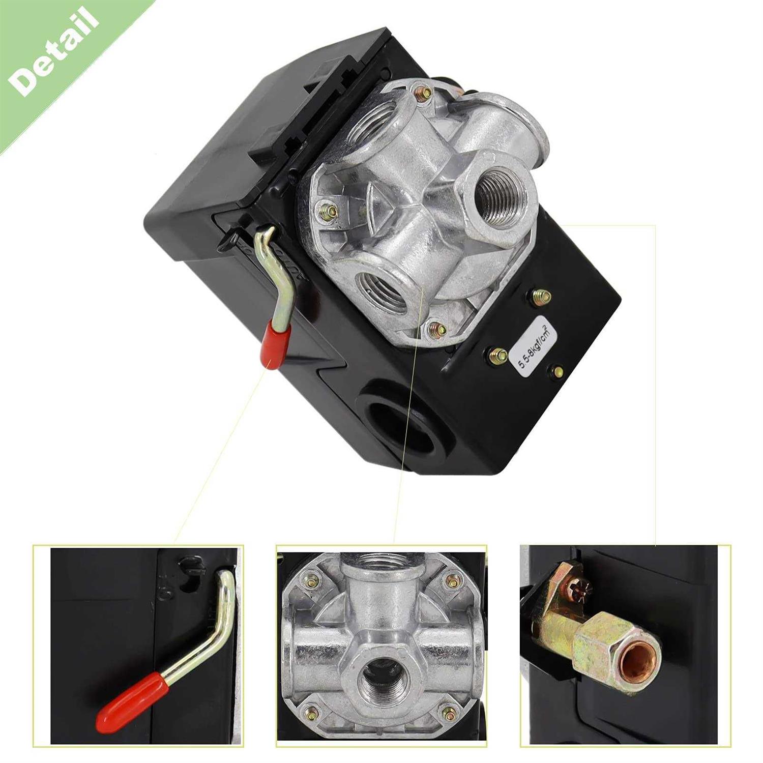 Gekufa Air Compressor Pressure Switch 95-125 PSI Control Unloader LF10-4H 95-125 PSI 20A 4 Port Pressure Control Switch Valve NPT 1/4