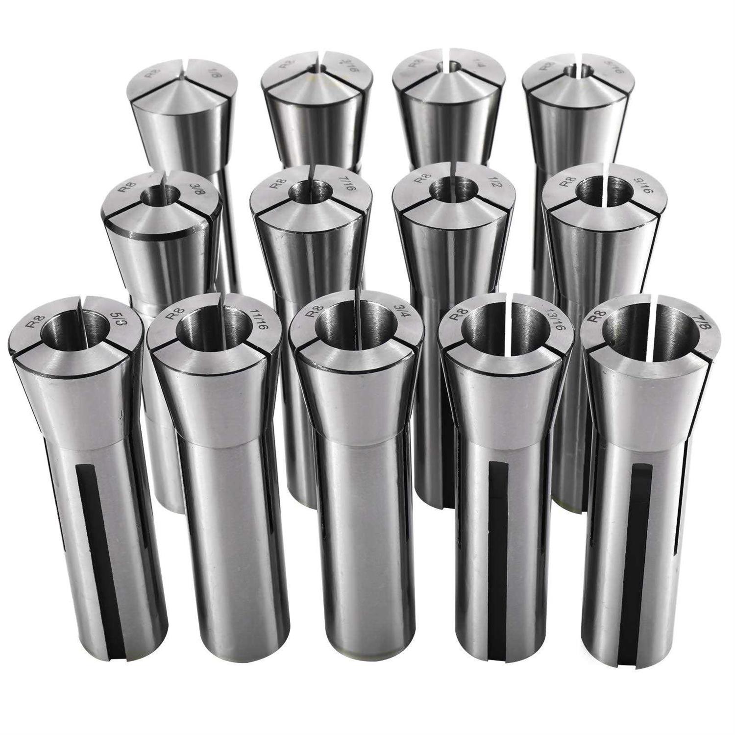 KUNTEC 13 Piece Precision R8 Collet Set Mill Collets Set Taper Spindle R8 Collets for Mill Machine 1/8inch