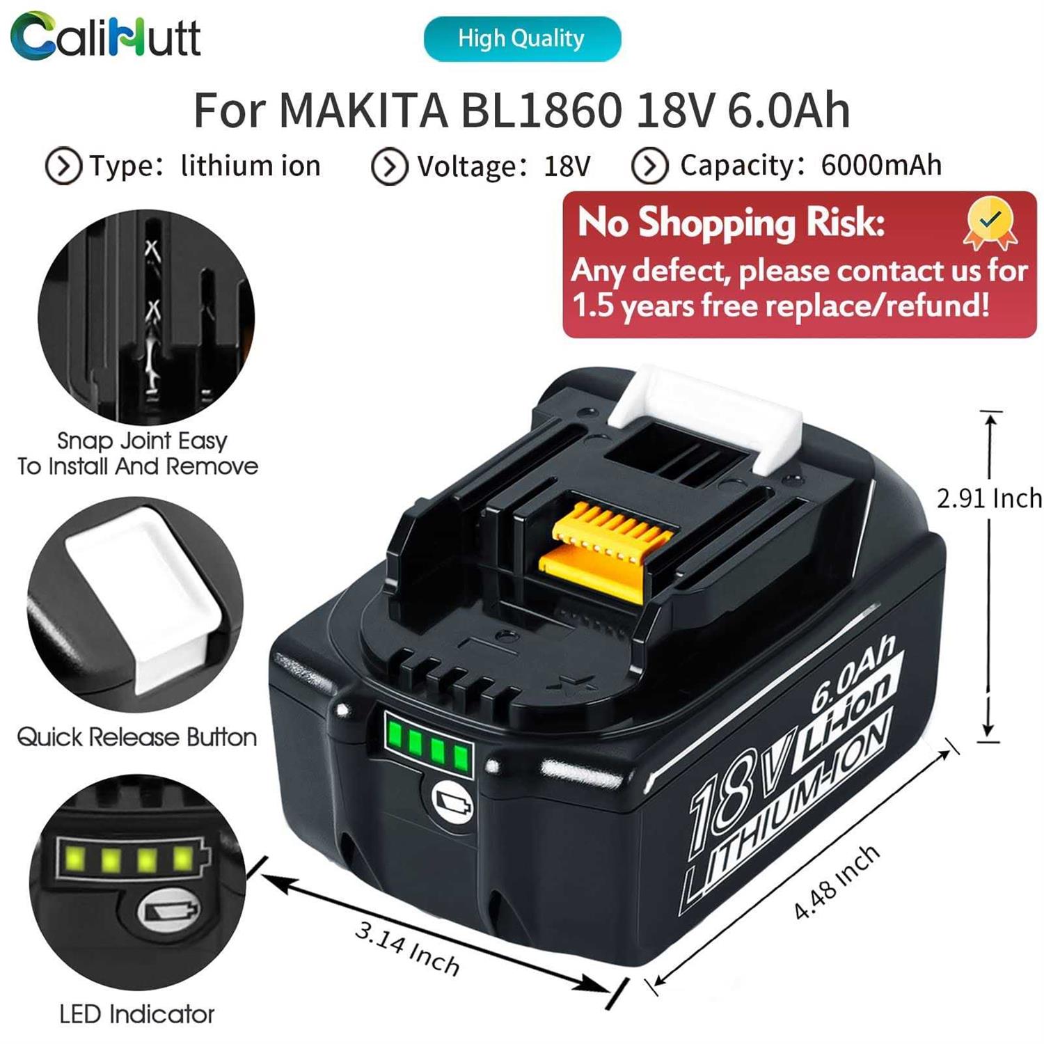 Upgrade CaliHutt 18V 6.0Ah Replacement Battery for Makita 18V