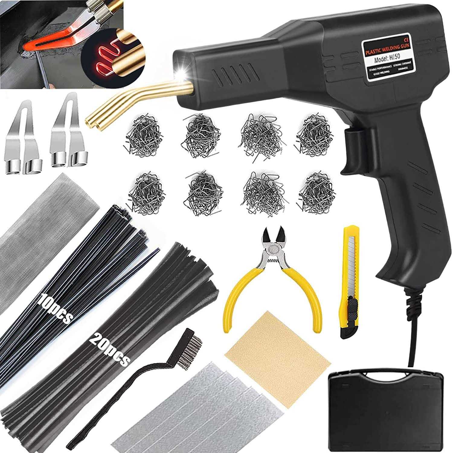 Upgraded 150W Plastic Welder Bumper Repair Kit,2-in-1 Plastic Welding Kit 800pcs Hot Staples & 30pcs Plastic Welding Rods,Hot Stapler Plastic Repair