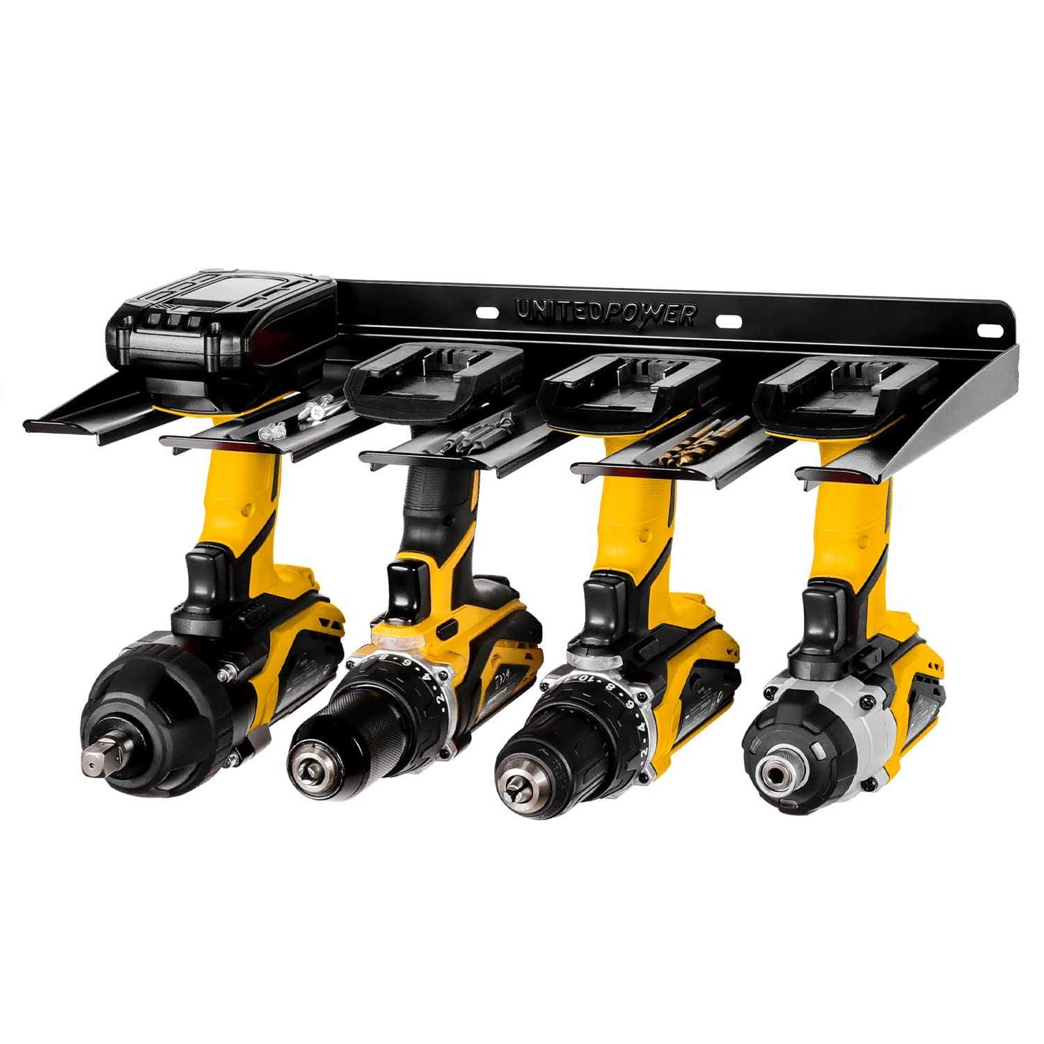 UNITEDPOWER Electric Drill Storage Rack Holds 4 Drills 2022 Upgraded Wall Mounted Power Tool Organizer for Workshop