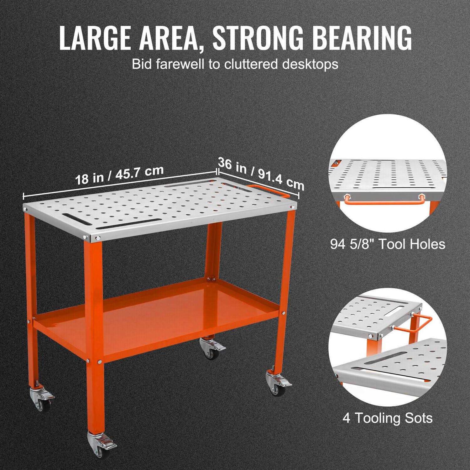 VEVOR 36 x 18 Welding Table 1200lbs Load Capacity Steel Welding Workbench Table on Wheels