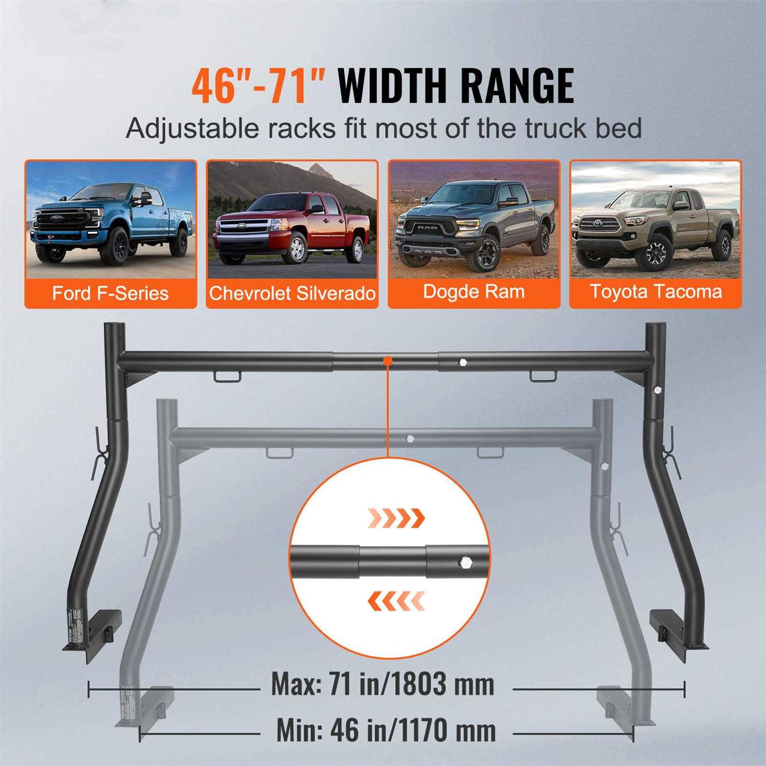 VEVOR Truck Rack 19-34inch Extendable Truck Ladder Rack 38.6-43.6 Adjustable Height