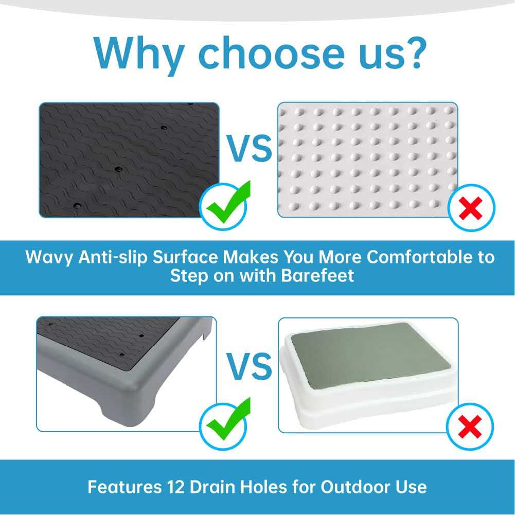 StrongTek One Step Stool for Adults and Elderly, Plastic Stair Riser with Non-Slip Surface and Feet