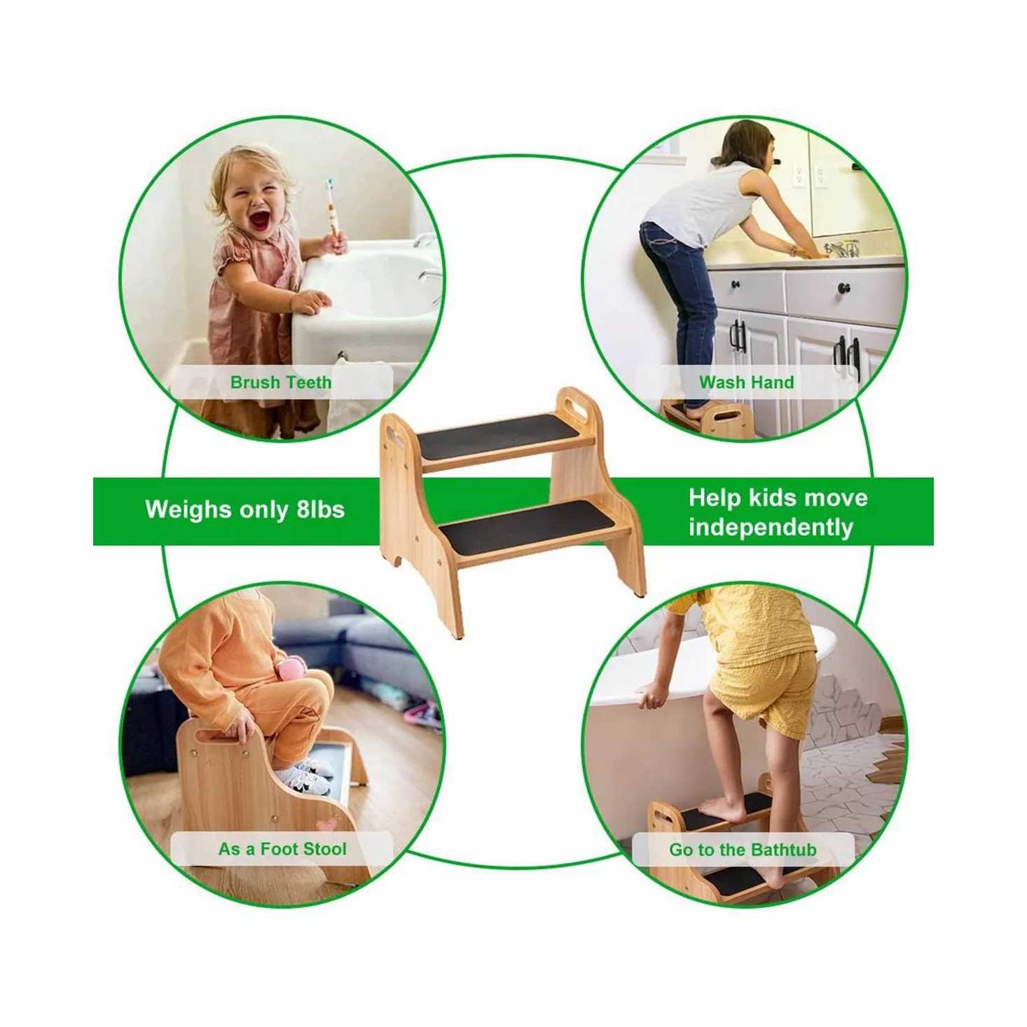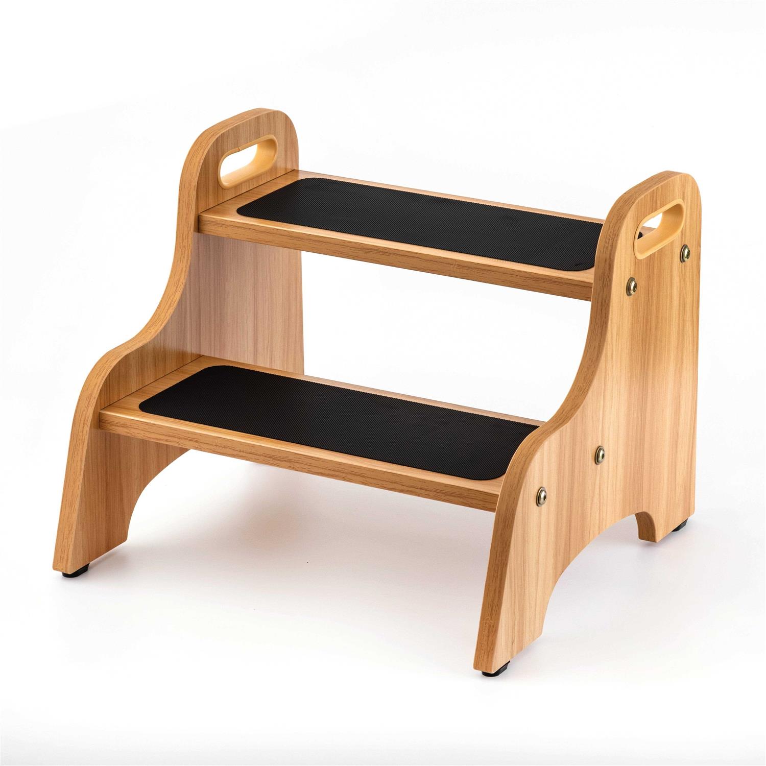 Strongtek Wood 2 Step Stool with Non-Slip Stepping Surface and Portable Handles