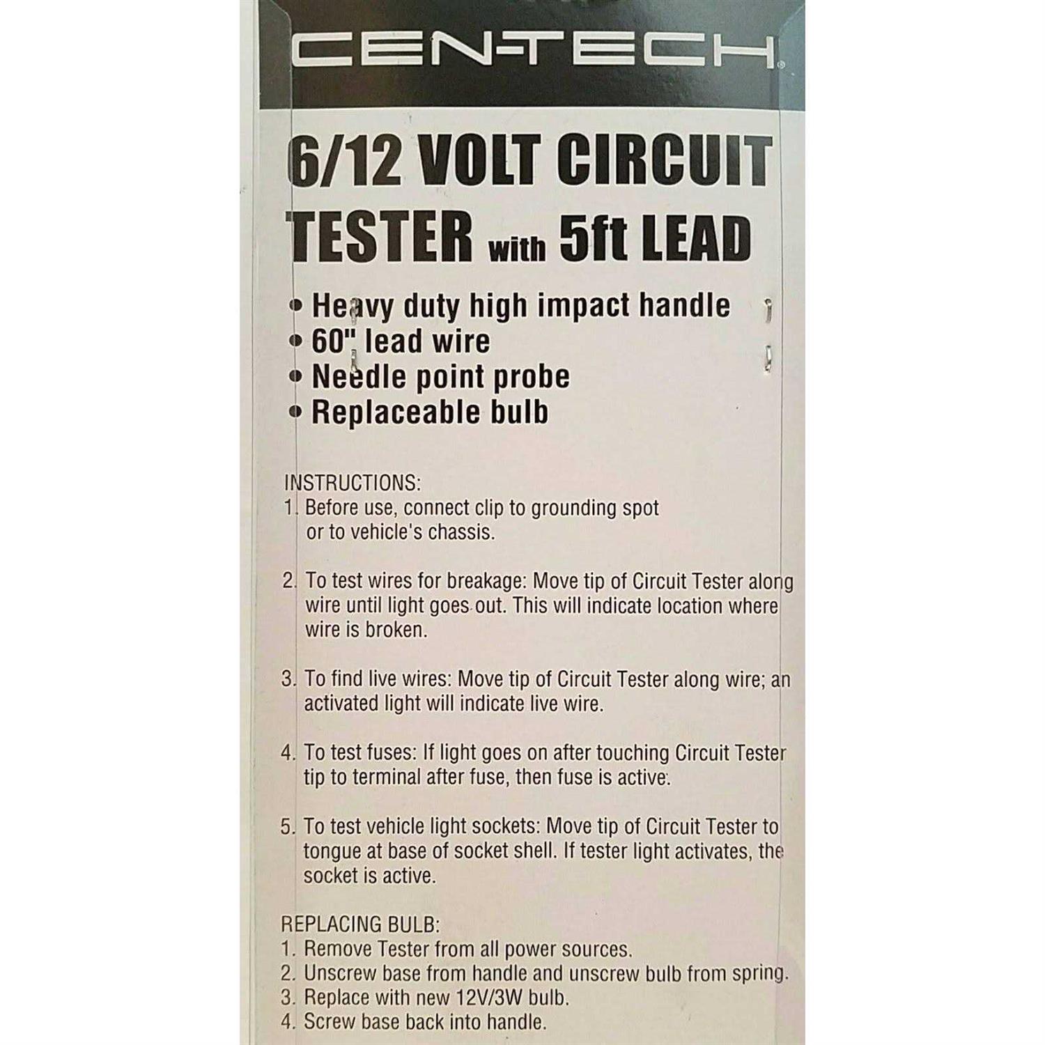 Cen-Tech 6/12V Circuit Tester with 5 ft. Lead