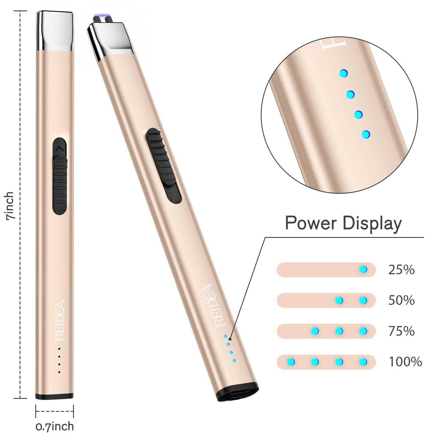 Reidea 2 Pack R1 Flat Electronic Candle Lighter, Windproof Flameless USB Rechargeable Arc Lighter with Safe Button and Power Indicator