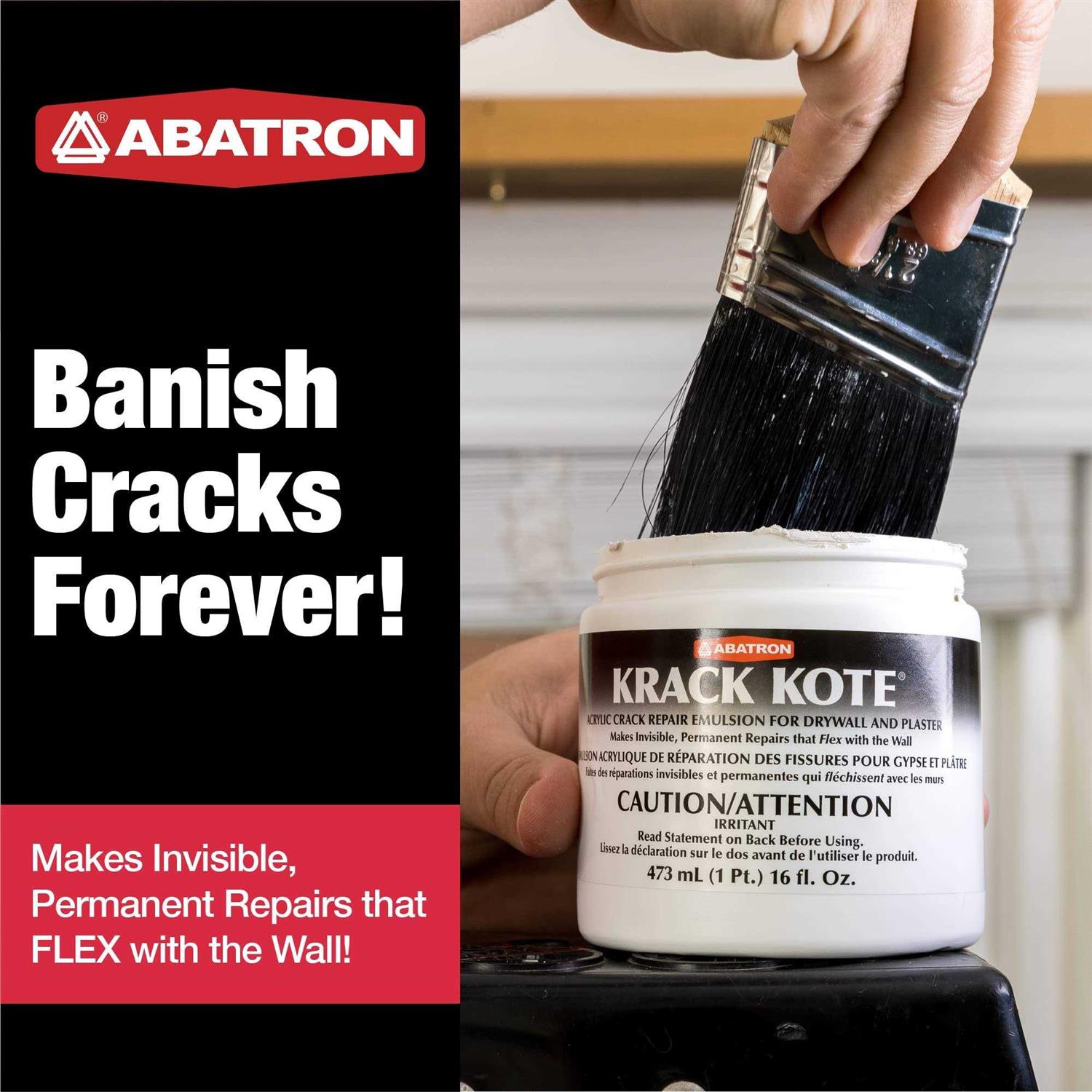 KRACK KOTE makes it easy to make quick, invisible, permanent repairs to cracked drywall and plaster, It requires no sanding and it can be applied and painted in under an hour, The specially formulated acrylic emulsion retains its flexibility as it dries, without shrinking, allowing KRACK KOTE to move as the wall moves, leaving a seamless repair that won’t reopen like other fillers or putties, Each kit repairs 20 feet of cracks, KRACK KOTE can be used on drywall, plaster, stucco, wood, concrete, and cement block, It cleans up easily with soap and water. Makes durable, flexible repairs to cracked plaster or drywall. Easy to apply and can be painted within 1 hour. Requires no sanding. Repairs 20 linear feet of cracks. Prevents stubborn cracks from reappearing.