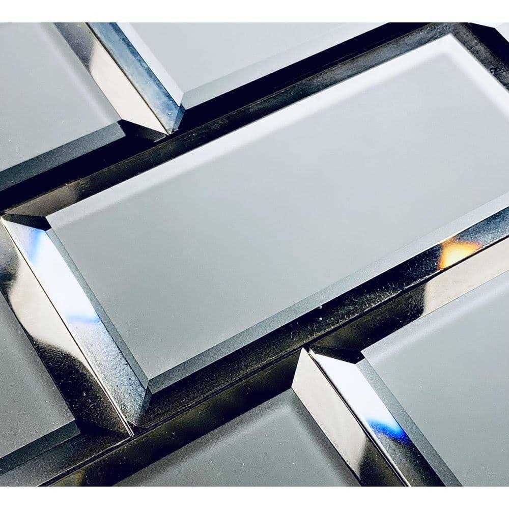 Frosted Reflections 3 in. x 6 in. Matte Glass Mirror Beveled Subway Decorative Kitchen & Bathroom Wall Tile Abolos Color: Graphite