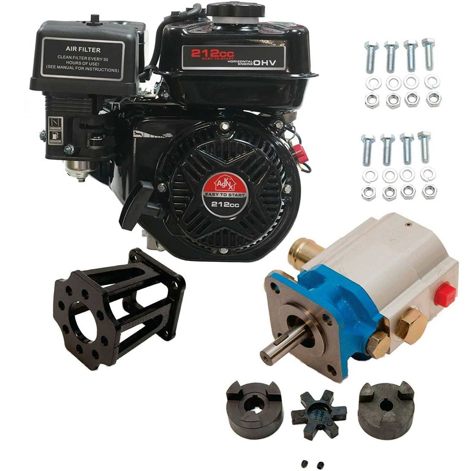 AgKNX ToolTuff Log Splitter Build Kit: Engine, 11 or 13 GPM Pump, Mount, Coupler, and Hardware Kit (Agknx 7.5HP Engine, w/13 GPM Pump)