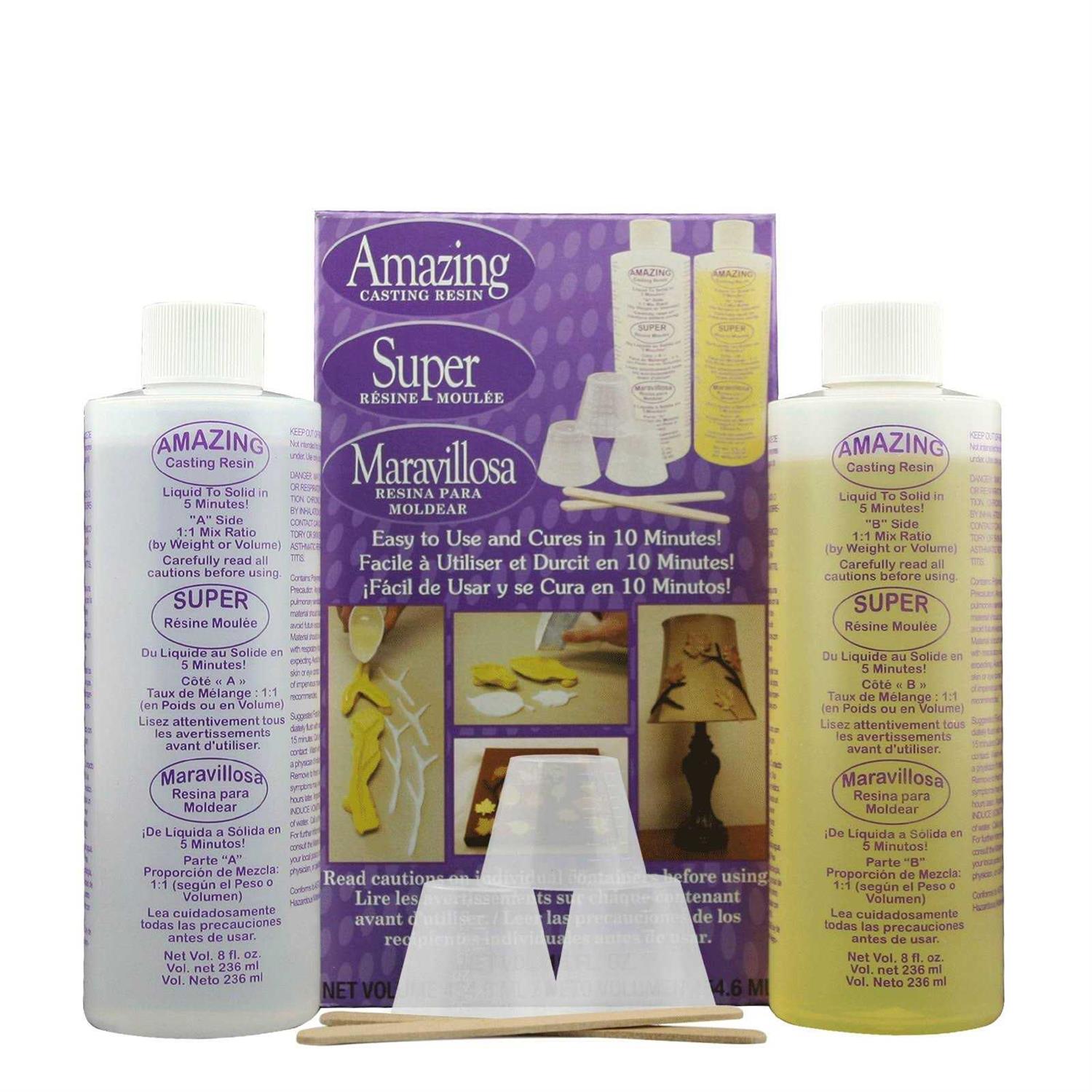 ALUMILITE CORP-Amazing Casting Resin Kit. Amazing Casting Resin is the easiest and safest way to create exact cast replicas of practically anything in minutes! Simply mix equal amounts of resin and hardener and pour into your mold (mold putty sold separately). Less than 10 minutes later remove a beautiful cast replica of your original. Your cured Amazing Casting Resin piece can be painted, stained, dyed, tapped, drilled and machined. This package contains two 8oz bottles of casting resin (mix the two to create the casting), three 2 tablespoon cups, two stir sticks and instructions. Made in USA.