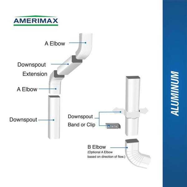 Aluminum Downspout A Elbow features a baked-on, natural clay-colored finish and durable aluminum construction. This elbow is designed for use at the top and bottom of the downspout to guide the runoff away from the wall and foundation of your home. This elbow is compatible with 2 in. x 3 in. aluminum downspouts and attaches with pop rivets or screws (not included).