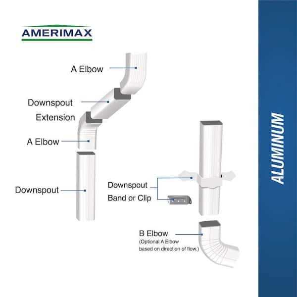 Aluminum Downspout A-Elbow features a baked-on, musket brown-colored finish and durable aluminum construction. This elbow is designed for use at the top and bottom of the downspout to guide the runoff away from the wall and foundation of your home. It is compatible with 3 in. x 4 in. aluminum downspouts and attaches with pop rivets or screws (not included).