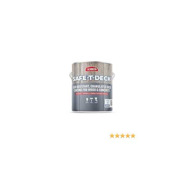 Ames Safe-T-Deck is a water-based, acrylic latex safety paint that comes in a granulated non-skid finish perfect for decks, stairs, walkways, ramps and more. Preserve, protect and renew old surfaces while providing extra life that is ideal for pedestrian traffic. Suitable for use on properly prepared exterior wood, and concrete/masonry surfaces. Color: White.