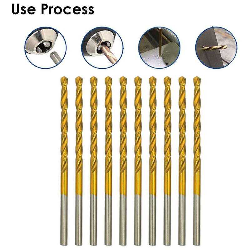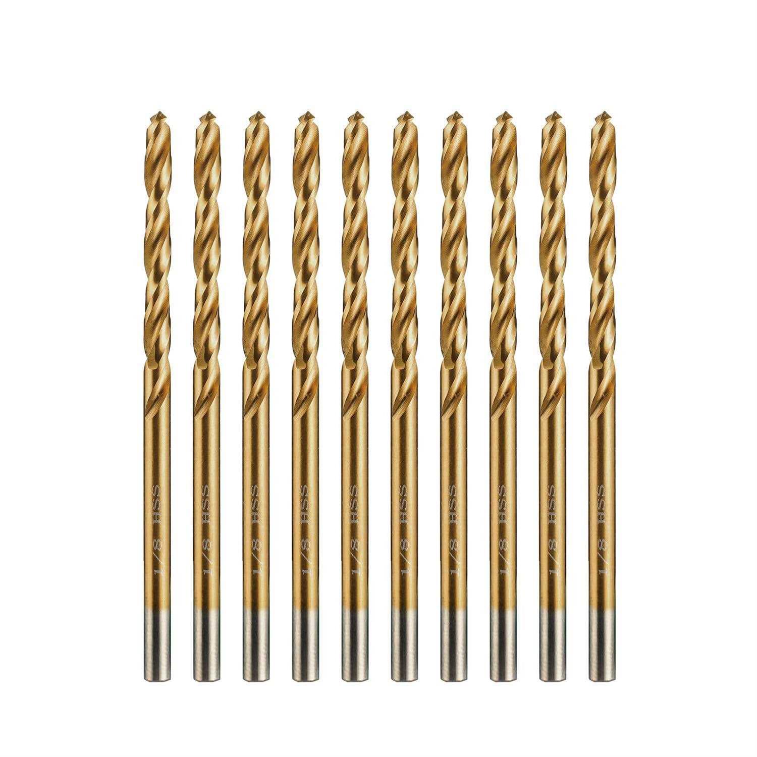 amoolo 1/8″ Titanium Drill Bits (10pcs) Premium 4341 HSS Metal Drill Bits for Wood Metal Steel Plastic Aluminum Alloy
