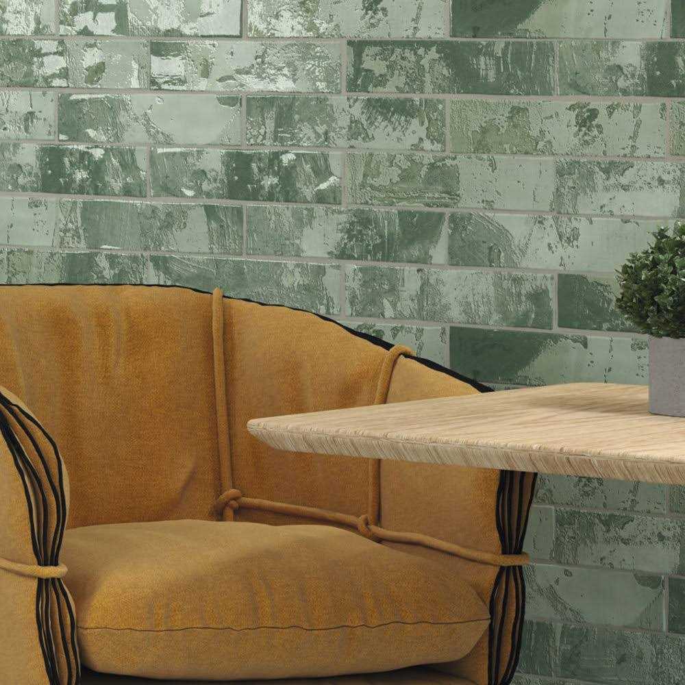 Andova Splash Viridian Green 3 inch x 12 inch Ceramic Subway Glossy Textured Look Wall Tile