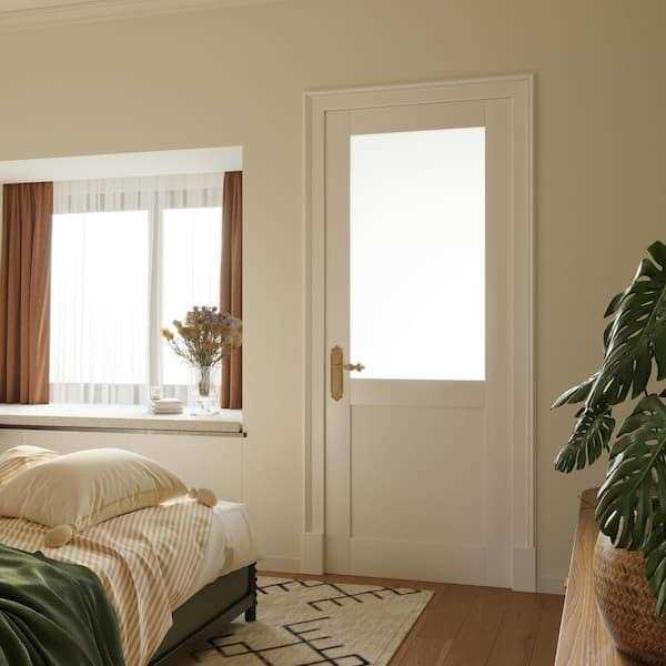 Ark Design 30 in. x 80 in. Solid MDF Core 1/2 Frosted Glass, Manufactured Wood Primed White Interior Door Slab for Pocket Door