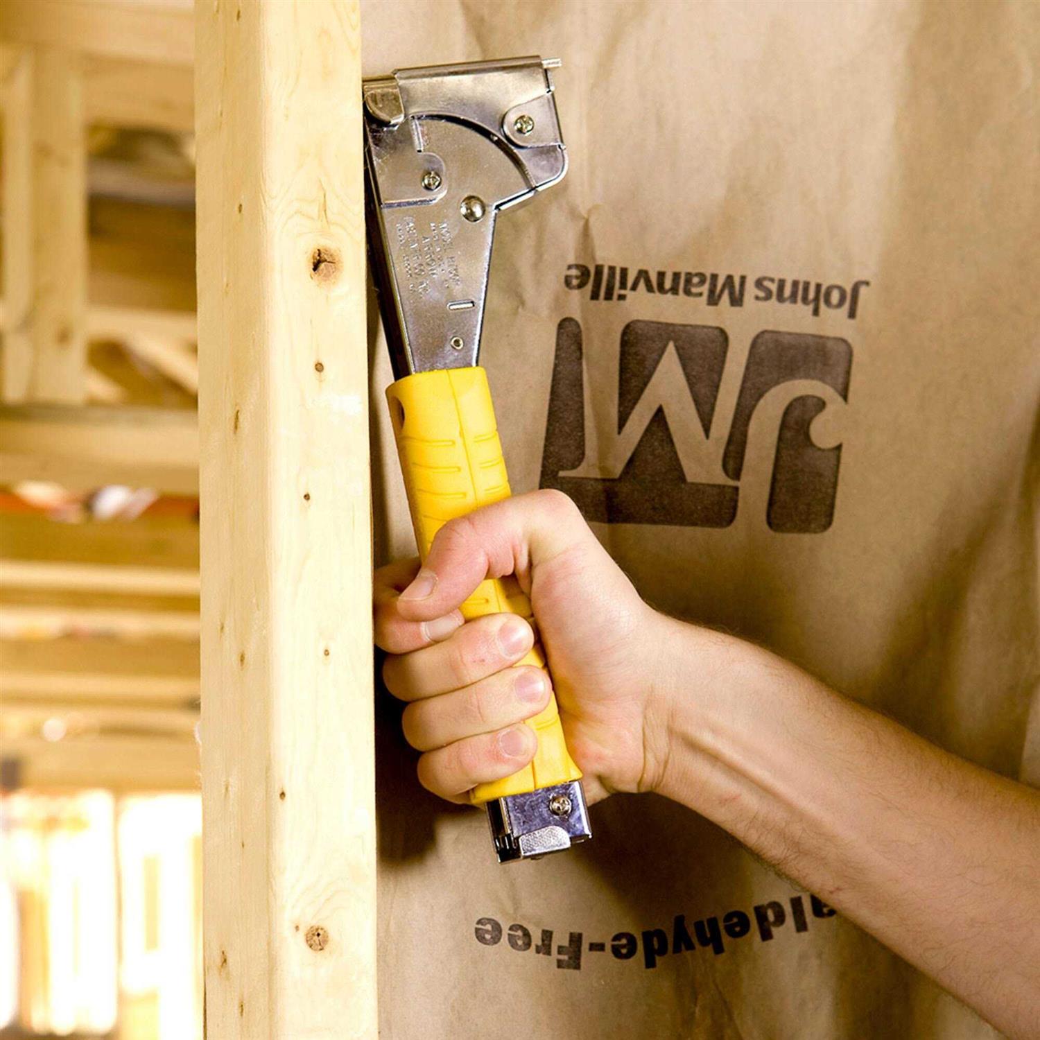 The Arrow HT50 Professional Hammer Tacker is a quality tool that has been a craftsman staple since the 1950s. It features steel parts for durability you can rely on housed within a striking chromed-steel body. Each piece of the Arrow HT50 Professional Hammer Tacker is hardened under the blazing inferno of a 1 500-degree furnace ensuring every part can withstand the pressure of even the hardest work. The rear-load magazine keeps load time to a minimum and can hold two full strips of Arrow T50 staples at a time. Coupled with a sure-grip handle its no wonder that this hammer tacker has found its way into households across the country. This hammer tacker is ideal for professional jobs such as housewrap installation insulation installation roofing and more.