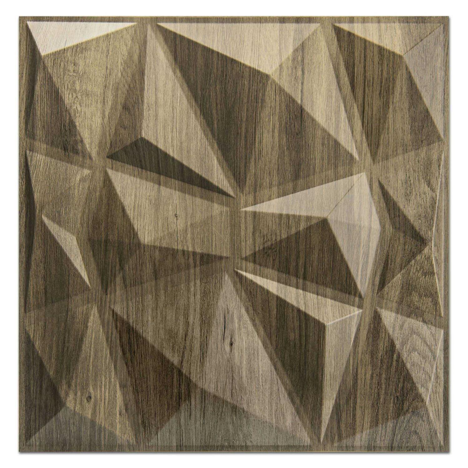Art3d 3D Wall Panels PVC Diamond Design (32 sq.ft) Wood 12Pack 19.7×19.7, Brown