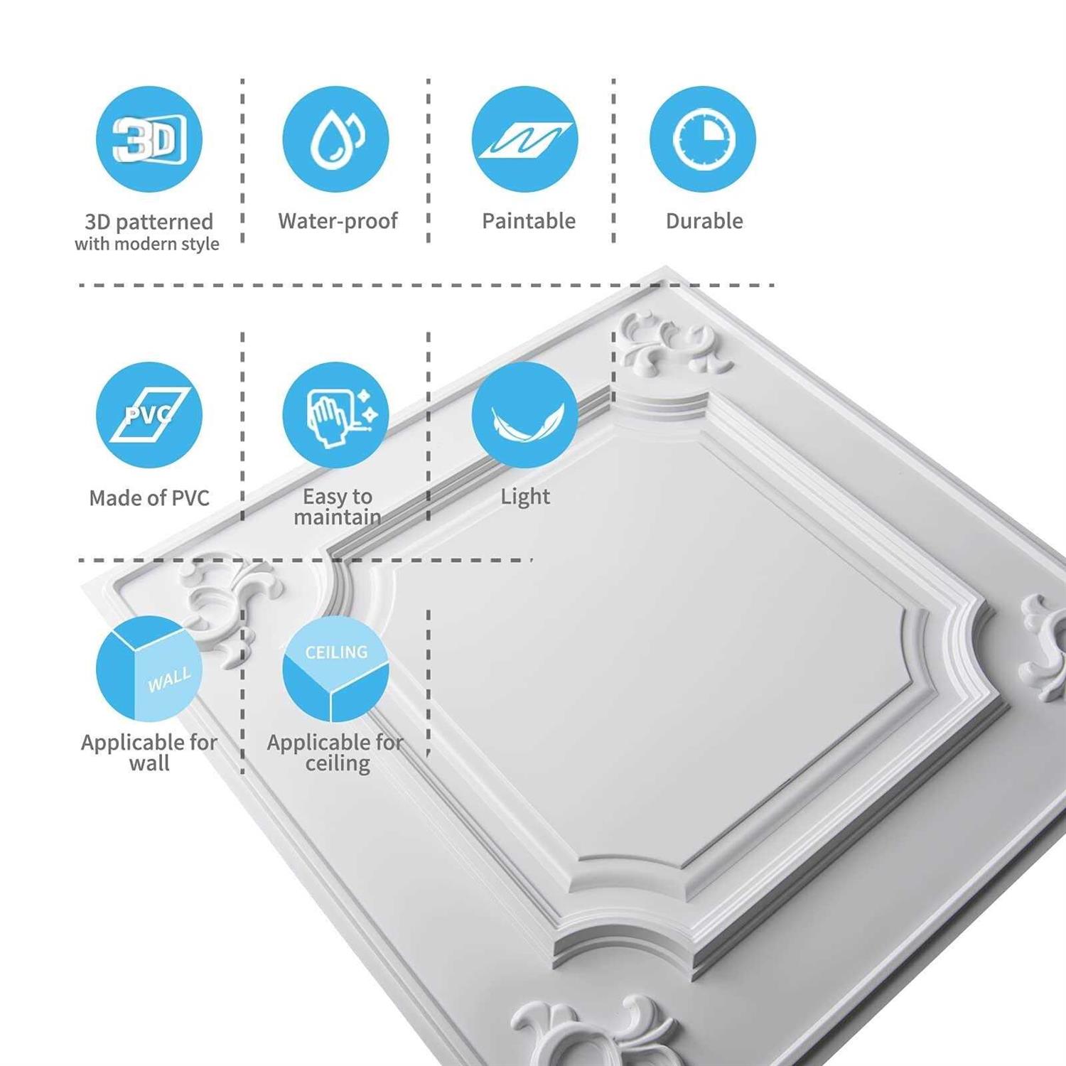 Art3d Ceiling Tile is ideal for both commercial and residential ceiling upgrades. It offers durability, style, and practicality, along with easy installation and maintenance. Perfect for businesses and households looking to enhance their space without any hassle. About this item Packing quantity: It contains 12 tiles of sized 24″x24″, total covering 48 sq.ft Installation: Easily lay into a standard 15/16″ T-bar drop ceiling grid system or glued over any flat substrates Construction: Thin and lightweight, pretty easy to work with, paintable, cut with a snip, scissors or utility knife for quick and easy installation Material advantage: It’s made out of lightweight PVC, flexible and will not crack, water and corrosion resistant for exceptional durability, safe and fully recycable Multipurpose: Recommended for use in living rooms, bedrooms, kitchens, TV backgrounds, feature walls, and ceilings Features 3D texture Anti-scratch Mold & Mildew Resistant Class “A” Fire Rating
