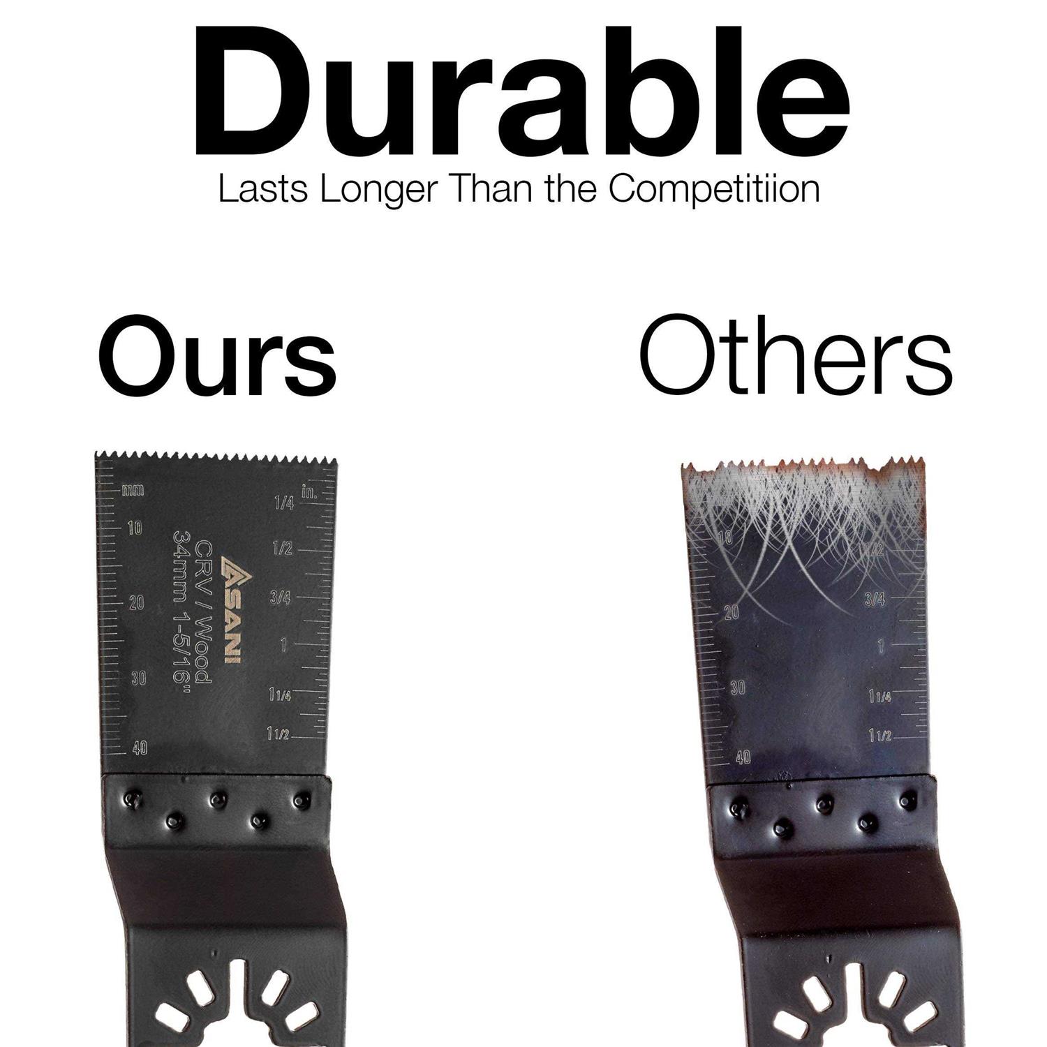 GIVE YOUR MULTITOOL A UTILITY UPGRADE Built for Reliability Whether youre tackling a new D.I.Y project, working on some home repairs, or remodeling a part of your space, this 24-pieceaccessory set equips your oscillating multitool with enhanced versatility. It contains it all: blades for cutting, tools for sanding,and accessories for scraping or removing grout. Just fit the right attachment and handle any job faster and with a professionaltouch. Heres what you get in every set: (1) semi-circular segment saw blade for wood / metal cutting Dia.:3-1/2 in.(87mm) (1) 2 inch Rigid scraper blade (1) 2 inch Flexible scraper blade (1) Standard endcut blade for wood cutting: 1-1/8 inch 3/4 inch 1-3/8 inch 3/8 inch (1) Bi-metal endcut blade for wood/metal cutting:1-1/4 inch (1) Precision endcut blade for wood cutting:1-3/8 inch (1) 2-5/8 inch standard flush-Cut saw blade for wood (1) 2-1/2 inch semi-circle carbide blade (1) 3 inch sanding pad (10) 3 inch sandpapers for wood: 2 sheets each of 60, 80, 120, 180, and 240 grit. (1) 3 inch triangular carbide grout removal rasp Experience the Difference Not all oscillating tool accessories are created equal. Some dull after the first use. Others struggle to cut through certain materials. And others result in shoddy jobs. Weve combined durability and precision to ensure every job goes down smoothly. Weve also designed our attachments with a universal fit that complements most major brands in the market. Whether you own a Hi-Spec, Ferm, Wen, Tacklife, Ridgid, Craftsma, Skil, Ryobi, Worx, Milwaukee, or Harbor Freight multitool, these accessories should workjust fine.”