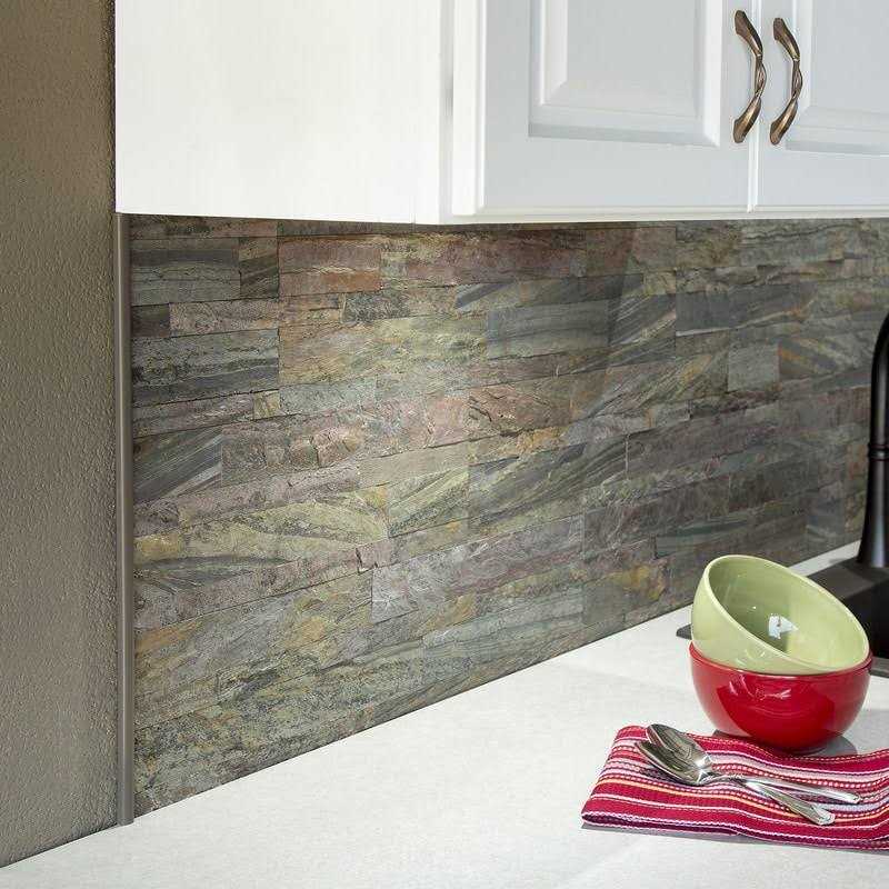 Professionally finishes the edges of backsplash Made of PVC, no special tools required – cuts with tin snips or a saw Aspect Trim is designed for use with Aspect Stone, Aspect Metal and Aspect Glass or materials of similar thickness (1/8in) Perfect to hide the cut edge or the end of a run on your backsplash The kit includes three (3) 24 in. Peel and Stick Decorative Wall Tile Trim pieces These Aspect Backsplash Accessory Kits allow you to apply your backsplash product and trims, finish the edges of your Aspect Backsplash and create a unified, integrated appearance. These finish components add a professional touch to your project and are easy to install. The kits are available in finishes that compliment Aspect Tiles.