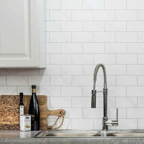 Aspect Collage Subway Carrara Marble 12.13 in. x 15.13 in. PVC Peel and Stick Tile