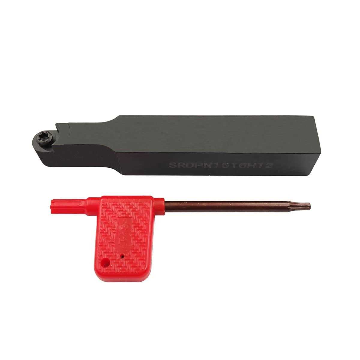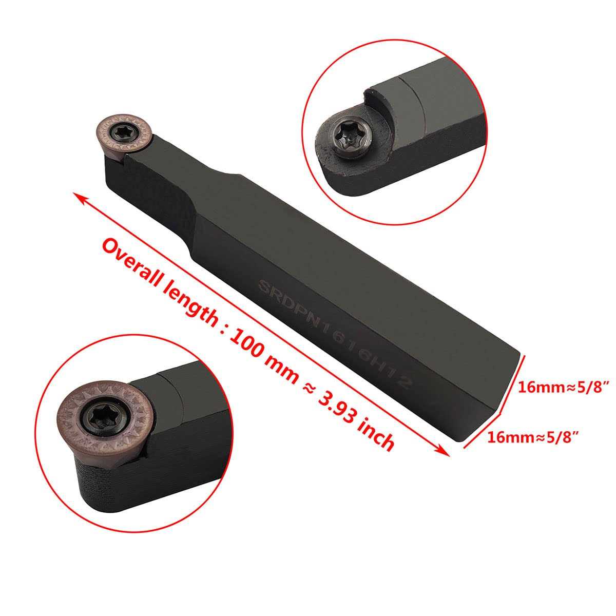 PACKAGE INCLUDES : You will receive 1pc SRDPN1616H12 5/8”/16mm shank diameter carbide lathe milling tool holder , 11pcs RPMT1204 MOE indexable carbide milling inserts cutters and 1pc T15 wrench. Material : The SRDPN1616H12 5/8″ lathe milling tool holder material is 40Cr steel, it has the characteristics of durability, sturdiness and stability, and good anti-rust performance. The RPMT1204 MOE indexable milling inserts cutter material is carbide, and the coating is CVD Al2O3 TICN, It has good toughness, wear resistance and high temperature resistance, the milling insert can be used for milling cast iron, steel parts and stainless steel. Milling tool holder cutter size : Shank Diameter ( length×width ) : 5/8″*5/8″(16mm*16mm) ; Overall Length : 100 mm ≈ 3.93″ . RPMT1204 MOE carbide milling insert size : Insert Style : RPMT , thickness: 0.19″ ≈ 4.8mm , diameter : 0.47″≈ 12mm,P=11° degree. Easy to store: the milling tool holder and carbide milling inserts are packed in a plastic container, safe and easy to store, please rest assured to buy! PACKAGE INCLUDES : You will receive 1pc SRDPN1616H12 5/8”/16mm shank diameter carbide lathe milling tool holder , 11pcs RPMT1204 MOE indexable carbide milling inserts cutters and 1pc T15 wrench.