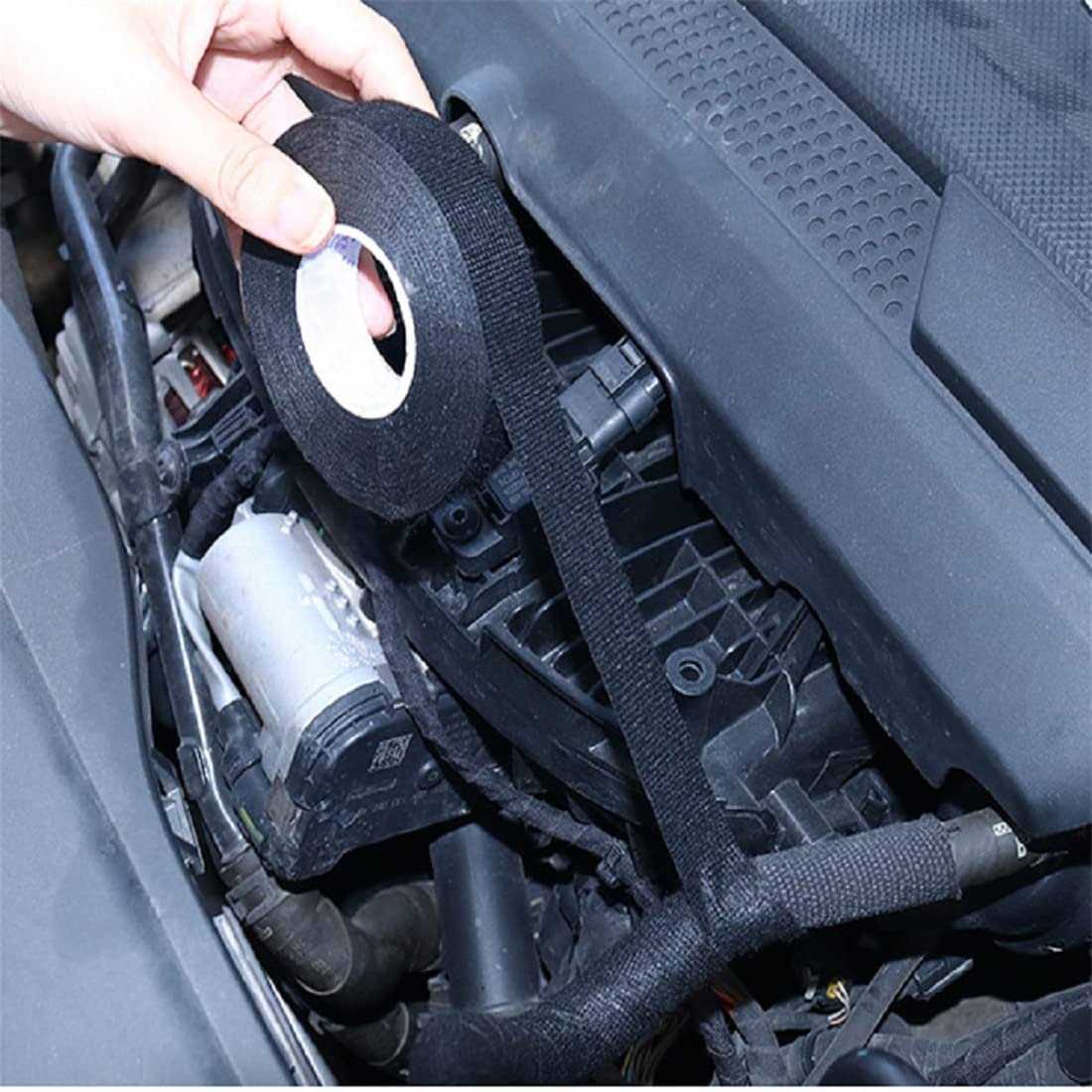 Automotive Wire Harness Cloth Tape, Wire Loom Harness Tape High Temp Wrapping Tape Noise Damping Heat Proof Black Adhesive Fabric Tape Electrical