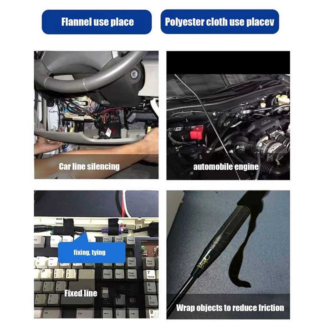 Duct Tape by soikoi. Details:Description: Bonded wiring tape, product features sound-absorbing PET non-woven tape, natural rubber adhesive. PET non-woven tape is flexible and wear-resistant, resistant to aging, hand-tearing color: black length 15 m, mainly used in cable kits for vehicle internal winding harnesses Mainly used in :cable kits for vehicle internal winding harnesses Temperature range:-40 Celsius -200 Fahrenheit Specifications: Material: PET non.