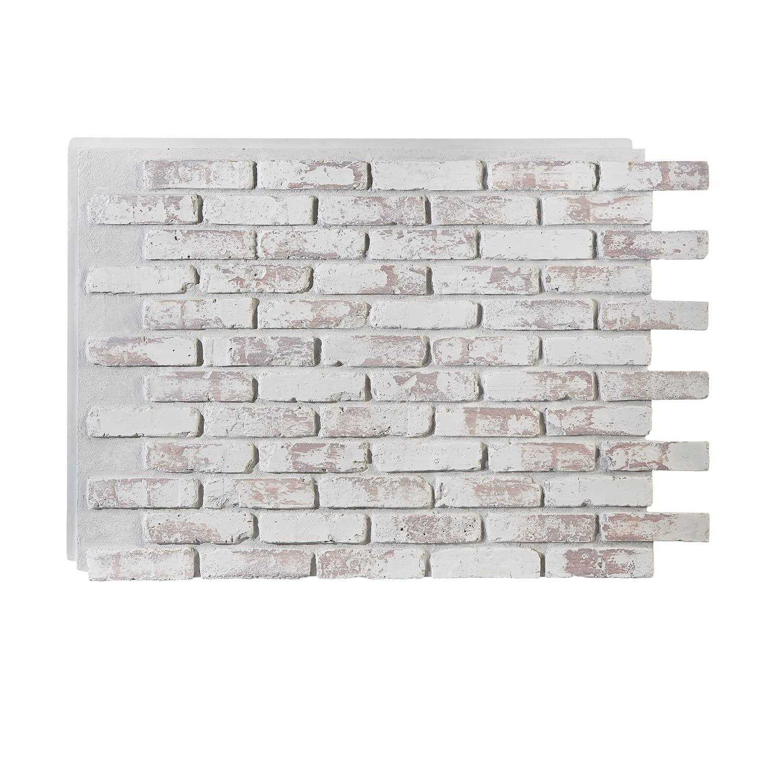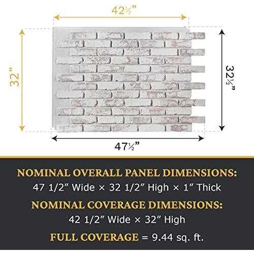Veneer Brick Panels With All The Benefits of Real Brick. All the benefits of real brick without the hard work or expense of hiring a mason. These faux panels have been molded from a real aged brick wall. 3D faux brick wall panels have all of the texture and character of a wall that is hundreds of years old. A simple, interlocking wall paneling system for a weekend DIY project with professional results. Enhance your home inside or outside with these faux brick wall panels. Panels are easily cut with any wood saw and are designed to interlock for an attractive, seamless look. They can also be stacked to cover any size wall. To install, use a saw to trim about a quarter of the width off the first panel. Place construction adhesive on the back of the panel and adhere that panel to the bottom right edge of the wall. Further secure the panel by adding screws along the perimeter and every foot throughout the panel. Add caulk and adhesive to the side lip of the panel and continue along the row. Once the first row is complete proceed to the next one. Finish the job by covering any screw holes using paint from the complimentary touch up kit. Faux brick panels are a smart choice for upgrading the inside or outside of your home. Overall Panel Dimensions: 47 ” Wide 32 ” High 1 inch Thick Coverage Dimensions: 42 ” Wide 32 inch High. Each panel covers 9.44 square feet. High-density polyurethane is lightweight. Each panel weighs about 11 lbs Interior/Exterior. Made in USA. Panels are sold per piece.
