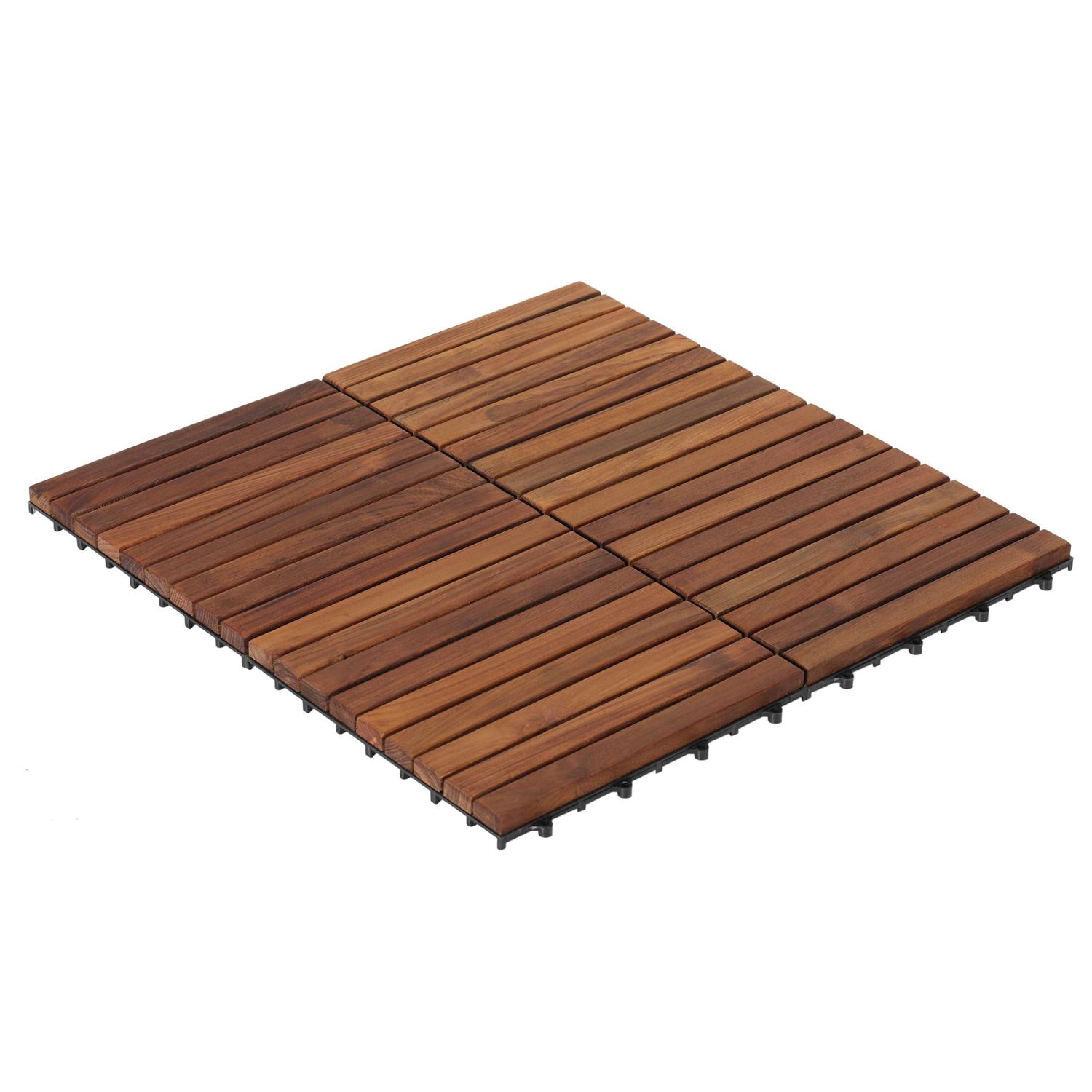 Bare Decor Solid Oiled Teak Wood Interlocking 9-Slat Flooring Tiles – 10 pack