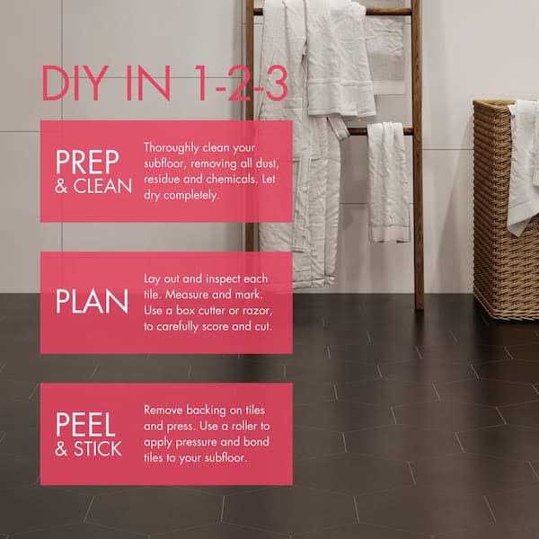 - Easy DIY peel and stick install over existing surface floors with no subfloor prep, acclimation or adhesives